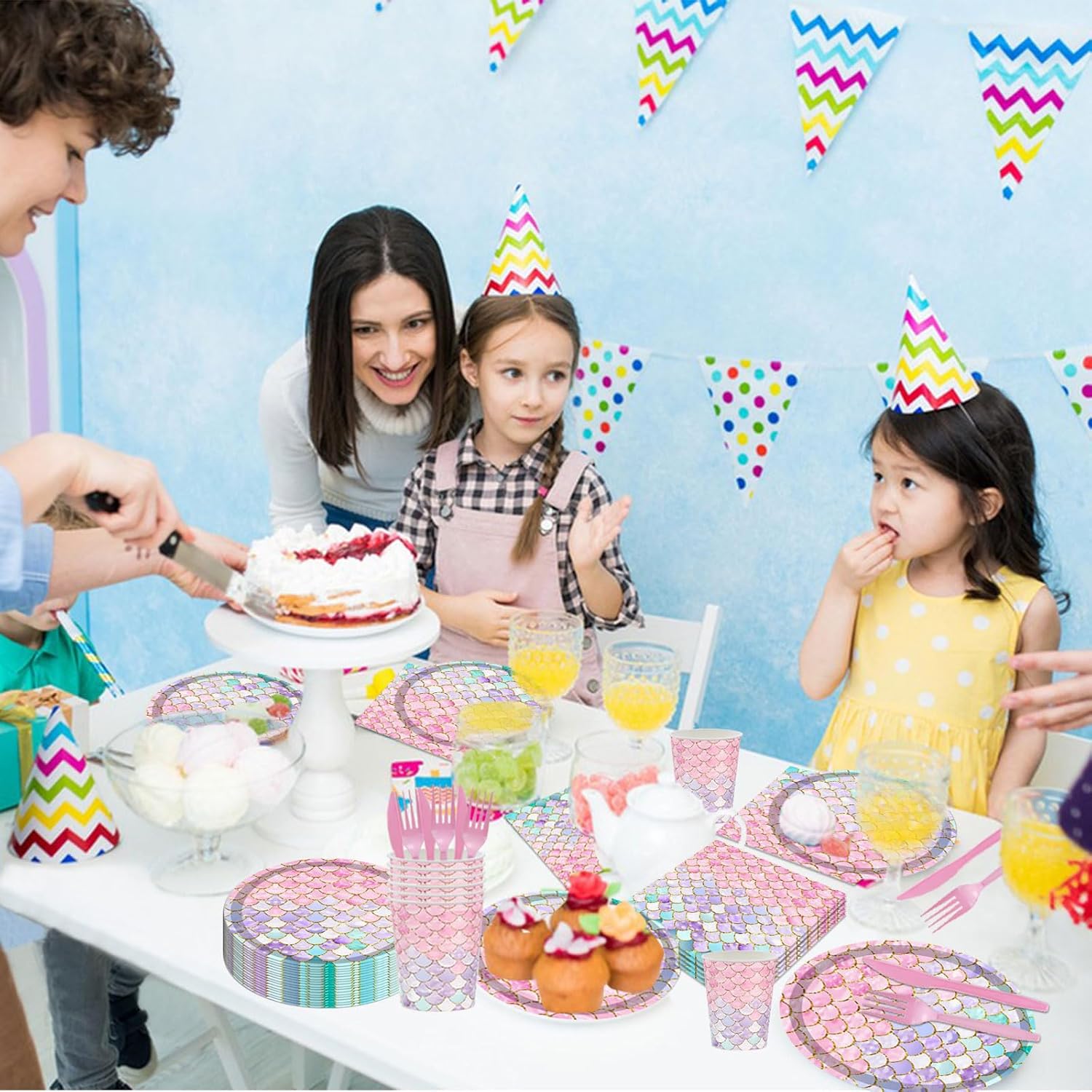 • PINK MERMAID SCALES DESIGN: The highlight of our mermaid birthday party decorations is the fusion of realistic pink and blue gradient color fish scales with our mermaid theme party decorations. More people can participate in the mermaid birthday party to enjoy the fun and inspire everyone's enthusiasm. Decorating girls birthday party with our mermaid party decorations pack will be a big hit at party.