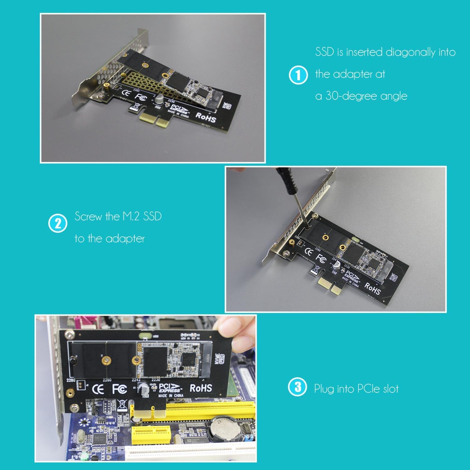 - M.2 NVMe to PCIe X1 Adapter: Converting one PCIe X1 slot on the motherboard to the M.2 Key M slot allows you to install M.2 NVMe SSD into this Key M slot