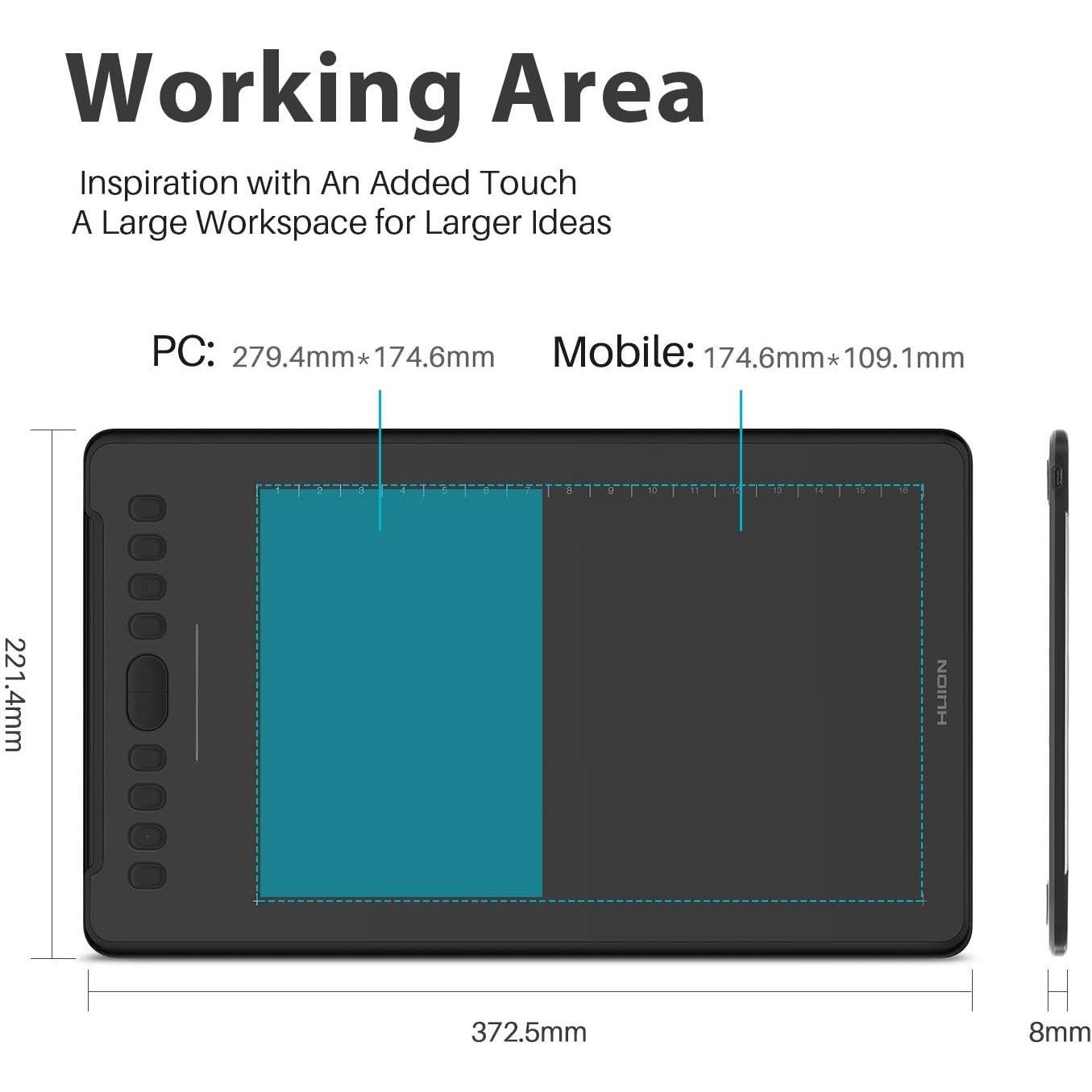 • Spacious drawing area: H1161's 279.4mm x 174.6mm active area allows for more natural, precise pen motions, cuts down on wrist strain. There is no hindrance to creating both hands on the graphic drawing tablets, which makes your creating more pleasant.