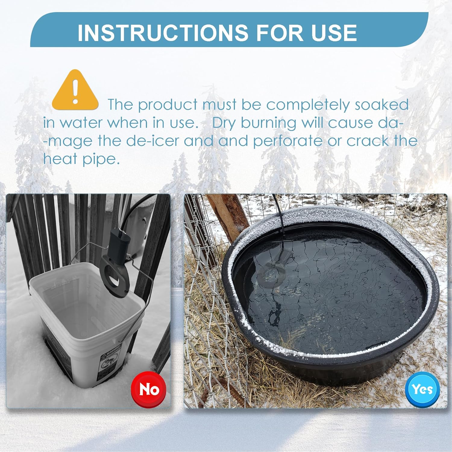 • Premium Quality Material: The de-icer is made of high quality cast aluminum with anti-rust coating on the surface, not easy to rust and keep the water clean. Safe for use in a variety of containers including plastic, structural foam and metal tanks