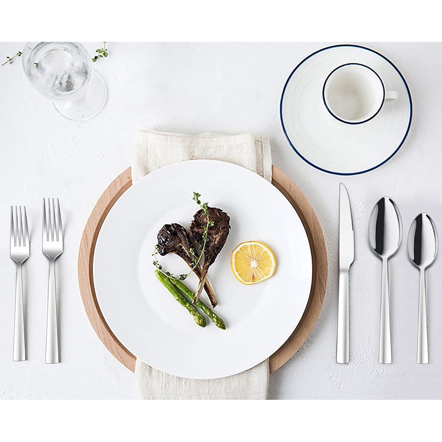• MODERN DESIGN - Square edge ends with ergonomic design, Contemporary simple design flatware complements most any décor, Elevate dining experience, Create an attractive table settings