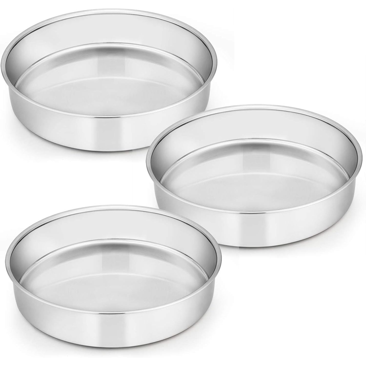- DURABLE: Layer cake pans are constructed by premium-grade and heavy gauge stainless steel to avoid deformation, Rust resistant and sturdy for a long-lasting service life, Easy to clean up and dishwasher safe