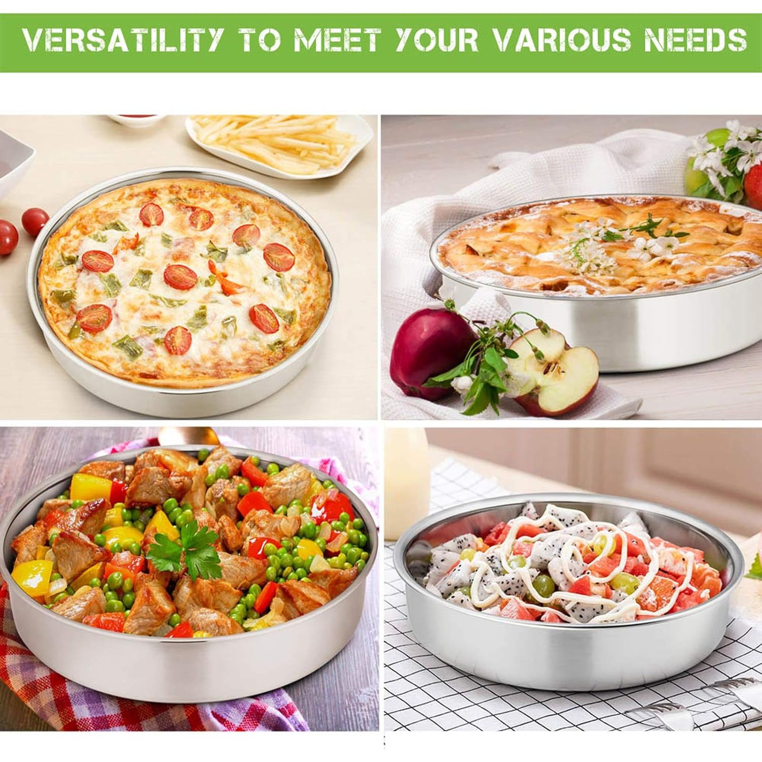 - HEALTHY: round cake pans are made of pure stainless steel without toxic materials, No harmful chemicals leaching into food, Unlike aluminum and Teflon coating pans, Healthy for your daily baking use