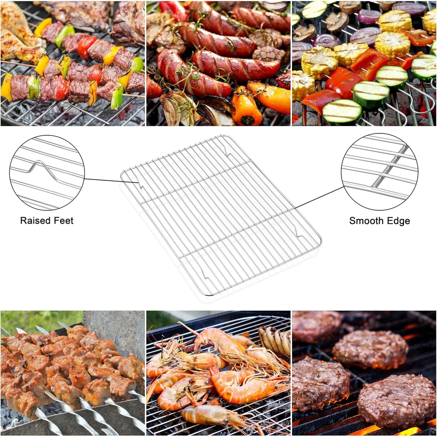 - PRACTICAL DESIGN - With 4 raised feet for better airflow, Smooth edges without rough spots, Narrow spacing grate to stop food from falling through, The cooling rack allows air to circulate around the pan, Cooking quickly and evenly, Saving time for repeated roasting