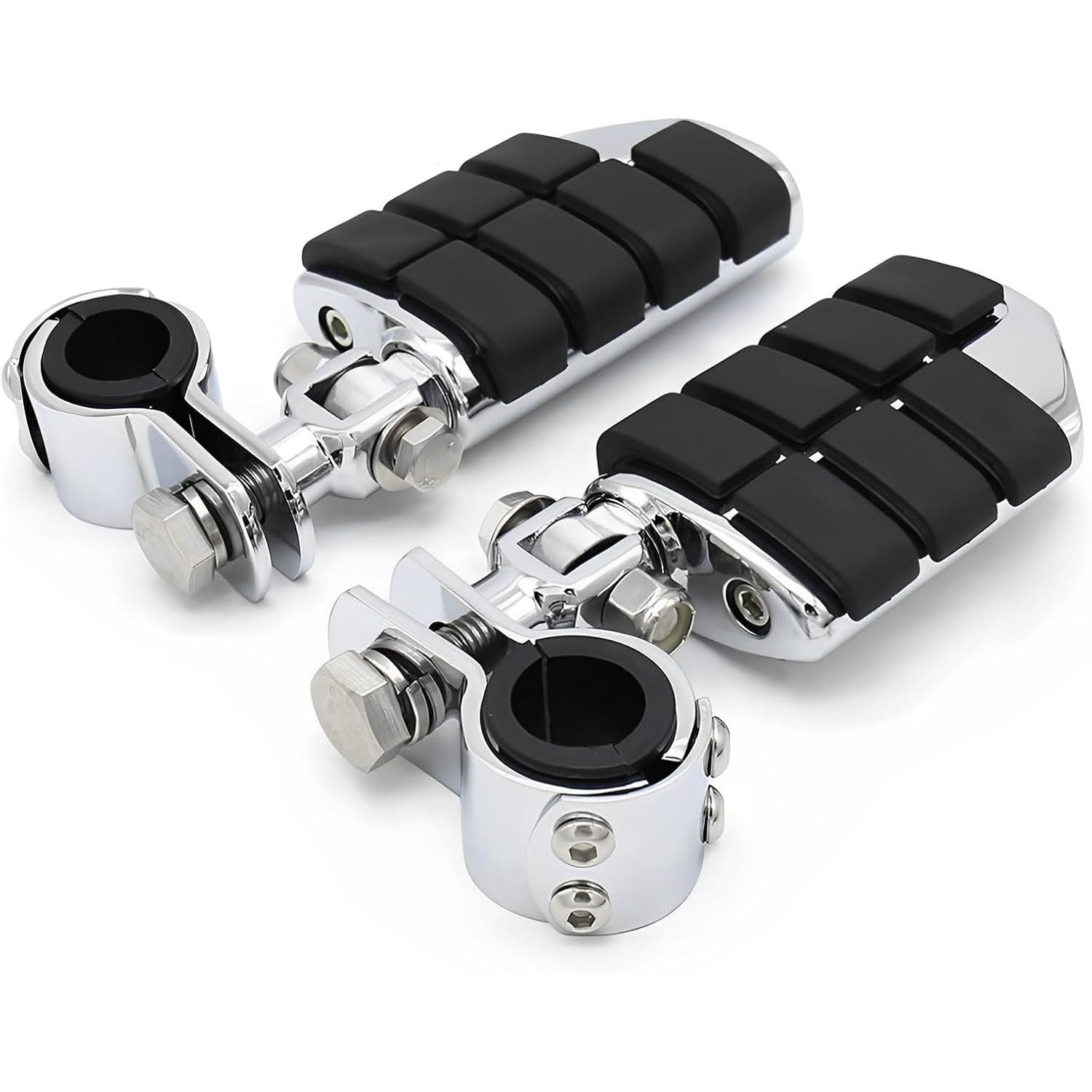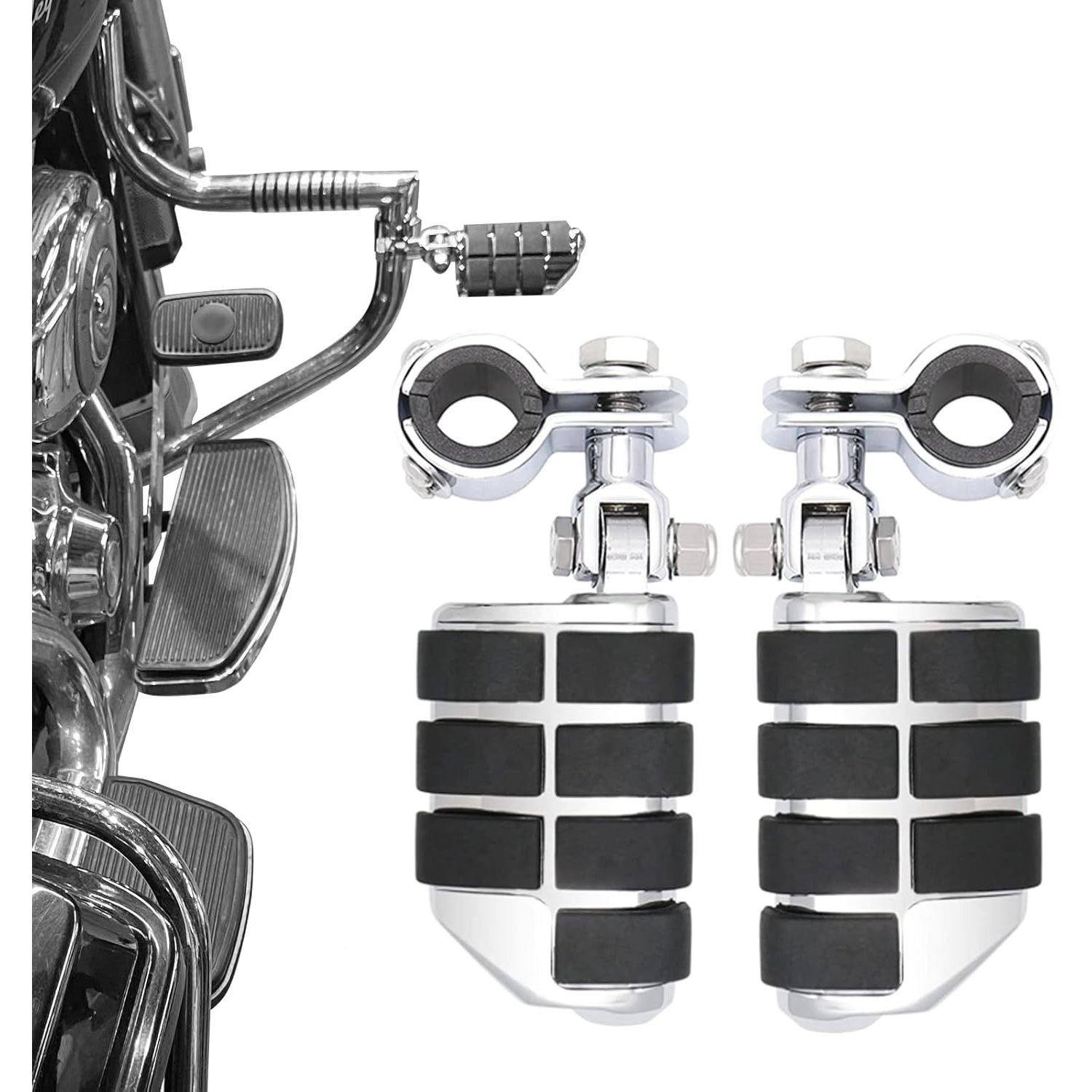 - 【Function】:Mount clamp is 360 degree fully adjustable ;Pegs sleek surface and trim profile adds a custom look. Broad surface place provides more support than stock foot peg. Soft rubber dampens vibration to improve riding comfort