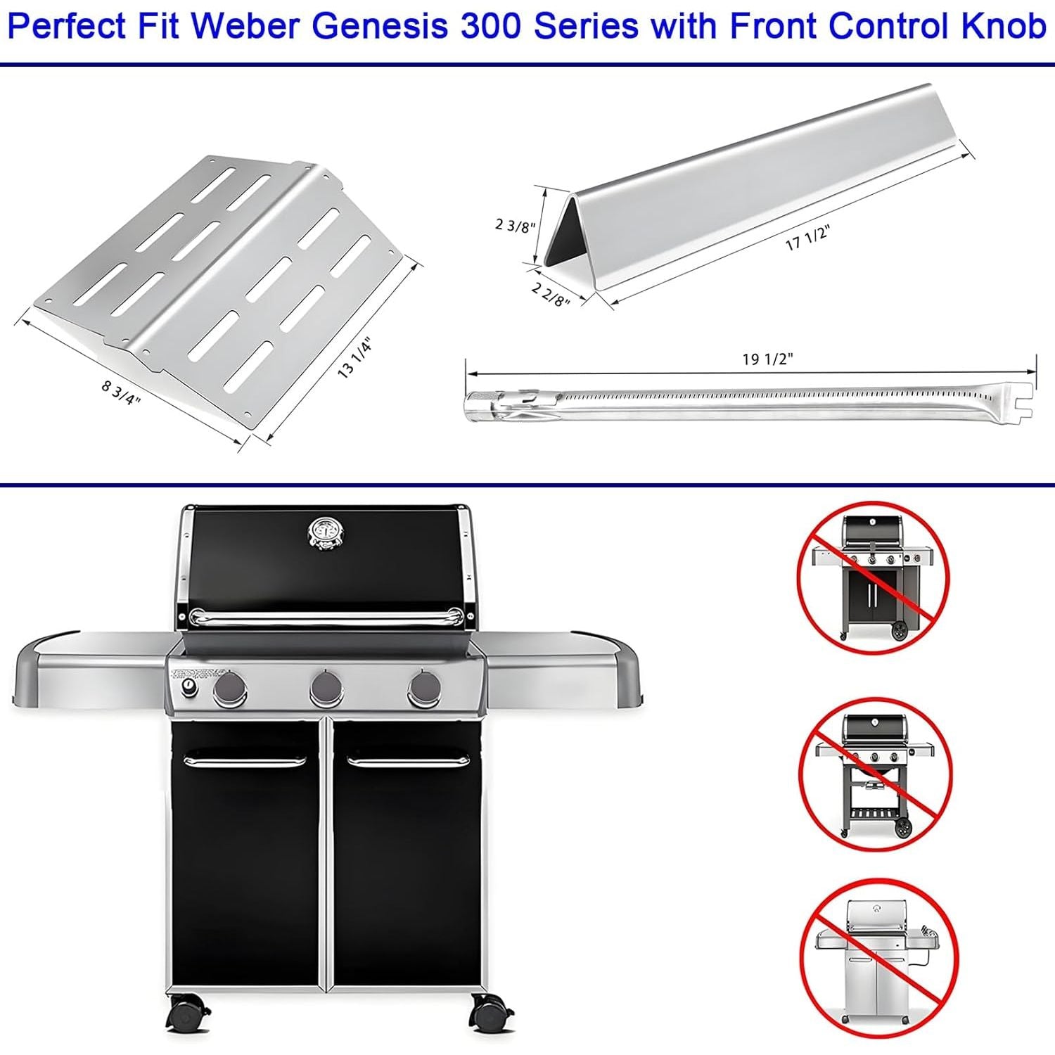 - Fits Weber Genesis E and S 300-series gas grills: Genesis E-310 E-320 E-330; Genesis S-310 S-320 S-330; Genesis EP-310, Genesis EP-320, Genesis EP-330 Gas Grills; DON’t fit Weber Genesis II 300 or Genesis II LX Series. PART NUMBER---Flavorizer Bars: 7621 7620; Burner Tube: 62752; Heat Deflector: 65505, 7622, 62756