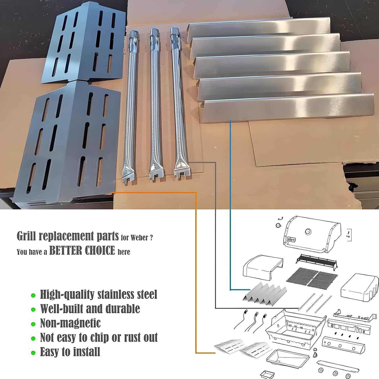 - Grills Replacement Parts for Weber Genesis Grills were made of heavy-duty stainless steel to ensure long-lasting use, possesses the advantages of higher durability and better corrosion resistance, These flame tamers have superior non-stick and preferable water-resistant performance, clean up it is a breeze. Just wash it with soap and water once in a while and remain it desiccation