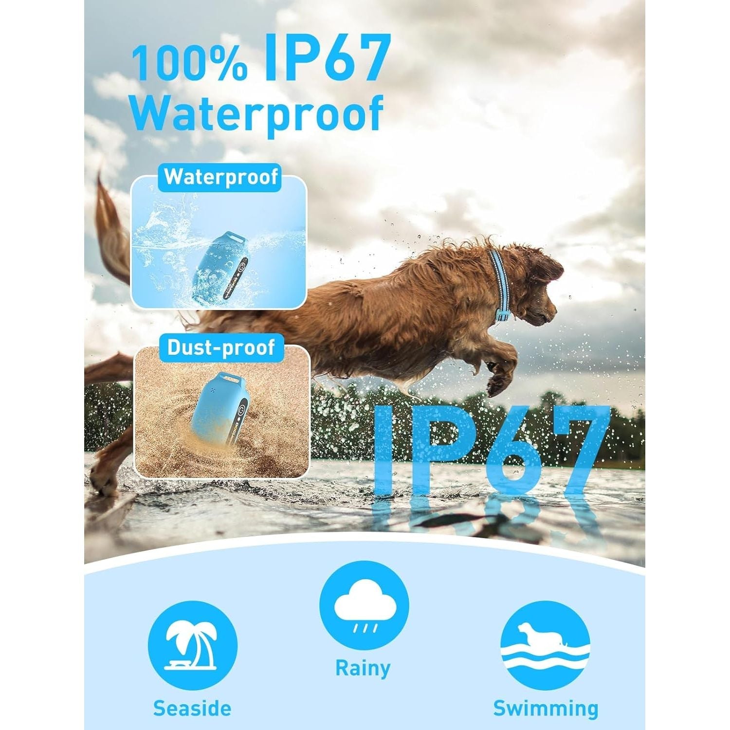 • IP67 Waterproof - This dog training collar features an IP67 waterproof rating, allowing you to train your dog effortlessly indoors or outdoors. Your dog can wear the collar while bathing, swimming in the pool, or running in the rain