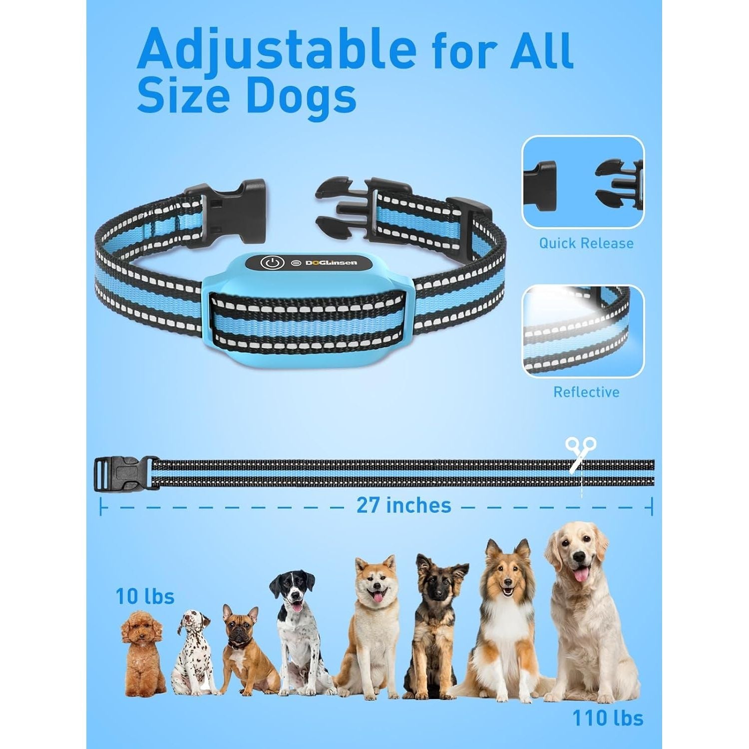 • Fits All Sizes Dogs & Safety Lock - The collar is adjustable (6-27 inches), suitable for small, medium, and large dogs. The soft and comfortable nylon material won't put any strain on your dog's neck. Additionally, the remote features a push-pull safety switch to prevent accidental activation