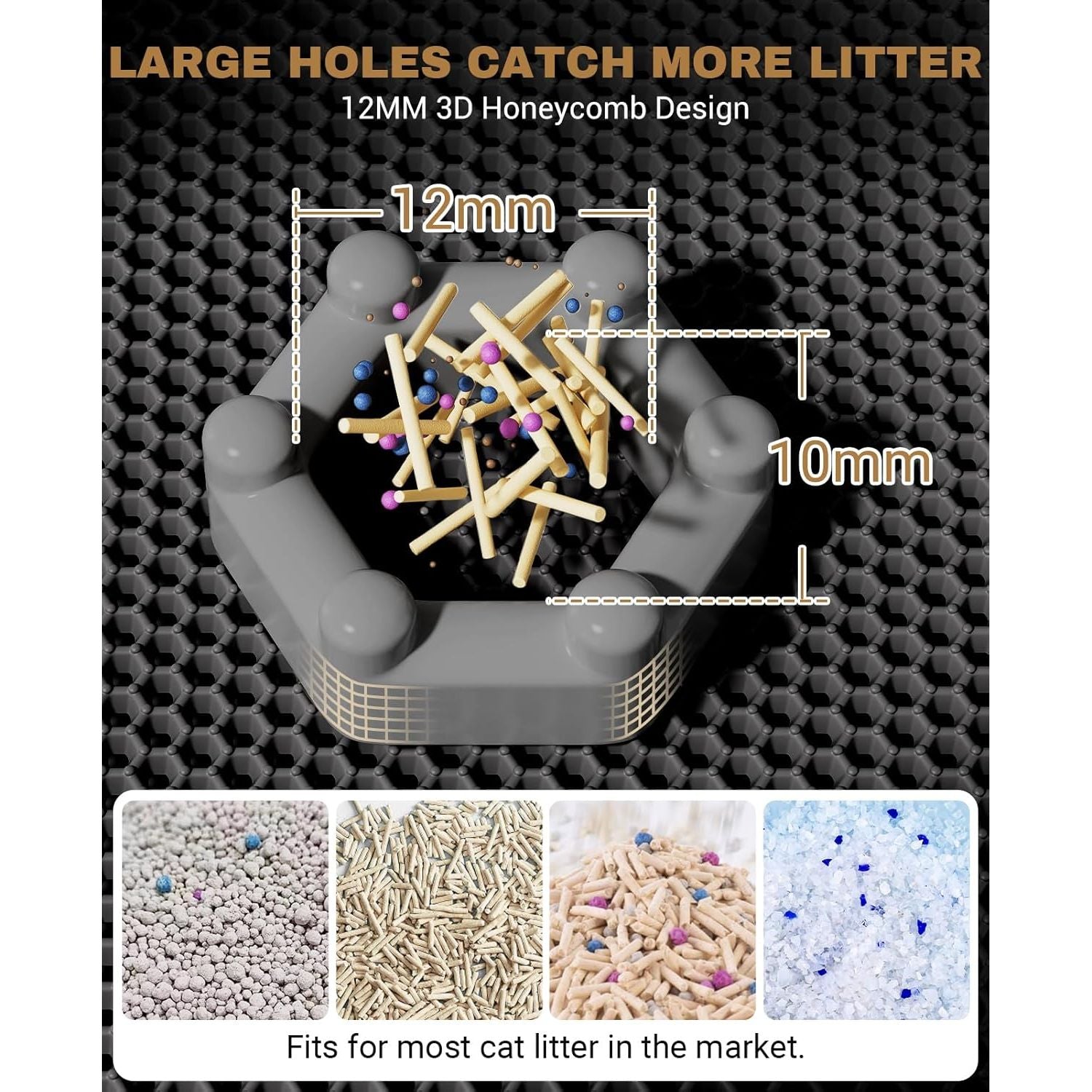 - Extra Large Cat Litter Mat: 45"x27" extra large cat litter mat is designed with detachable double layers. Specifically designed for multi-cat households, is large enough to accommodate 2-3 litter boxes. 12*10mm honeycomb can efficiently capture litter as your kitty exits out of the litter box, and the litter will be trapped and gathered by the bottom mat, keeping litter from tracking all over the house