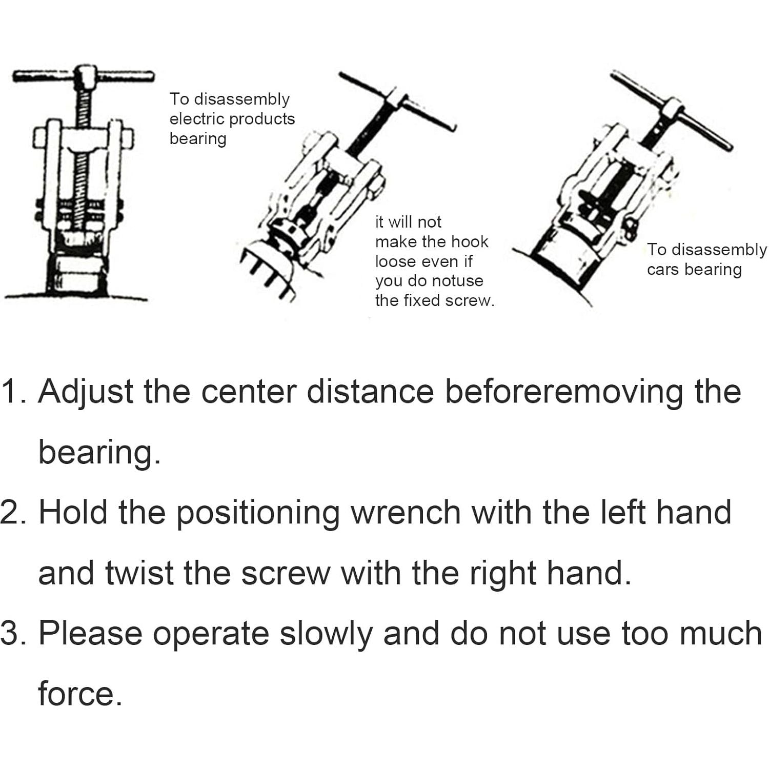 - √ Easy to Use - Use the two jaws to catch the bearing; Rotate the mandrel with the thread; Slowly pull out the bearing of the shaft.