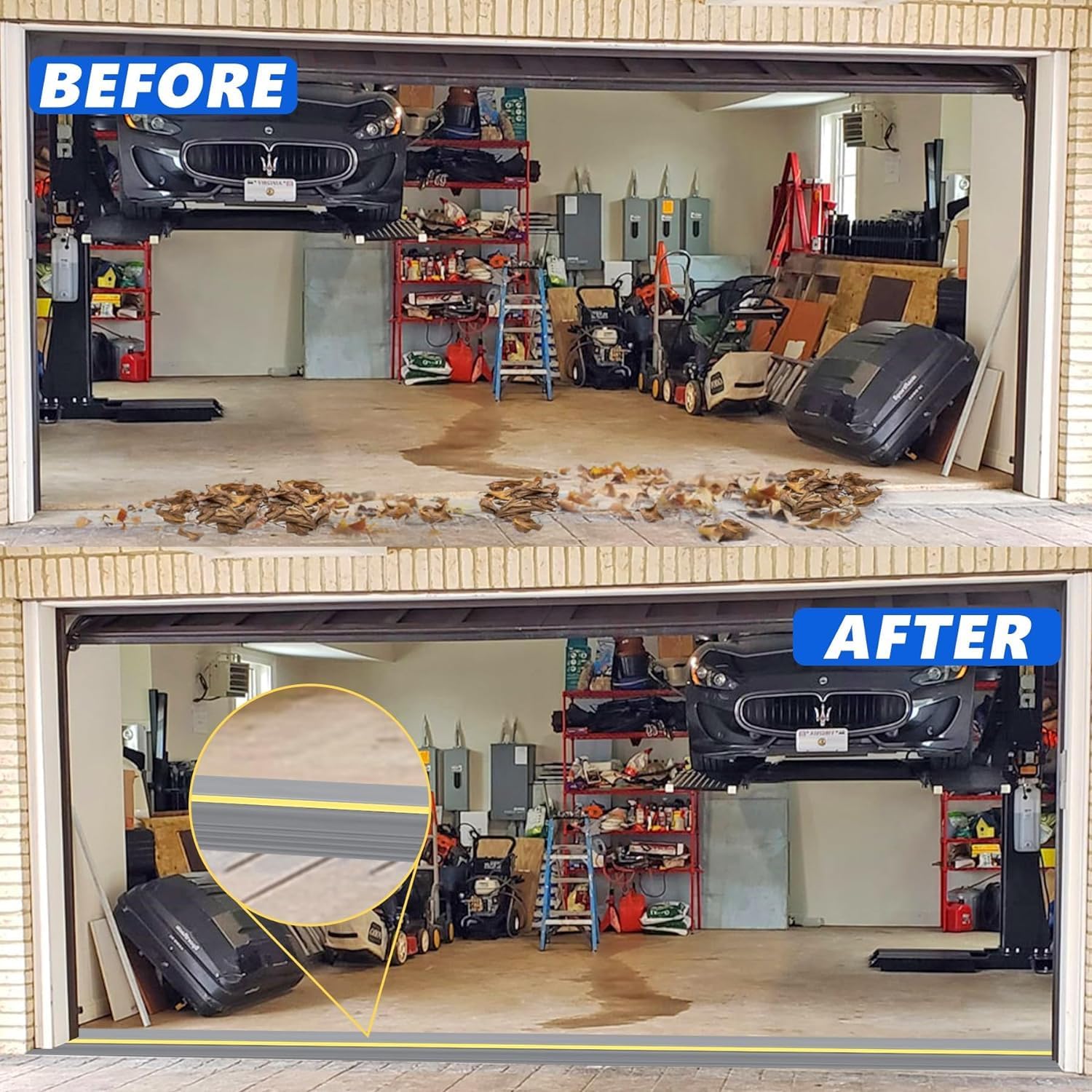 - 【Keep Clean】The 1/2" height garage door Seal bottom rubber threshold prevents sewage, rain, snow, leaves and debris from being blown into the garage. Reduces the time you have to spend cleaning because of the rubbish and leaves blowing in from the wind. Creates a clean, dry and tidy garage for you.