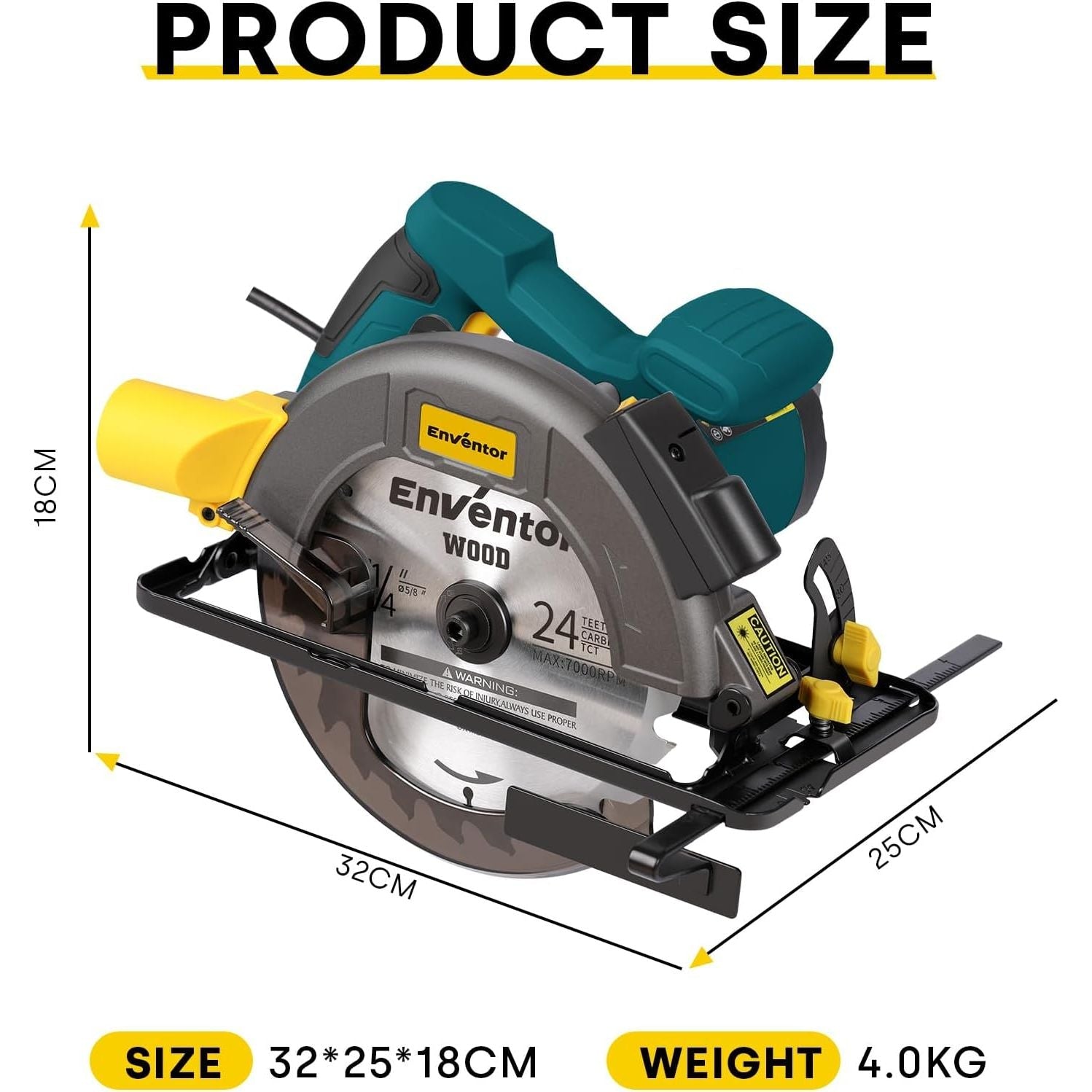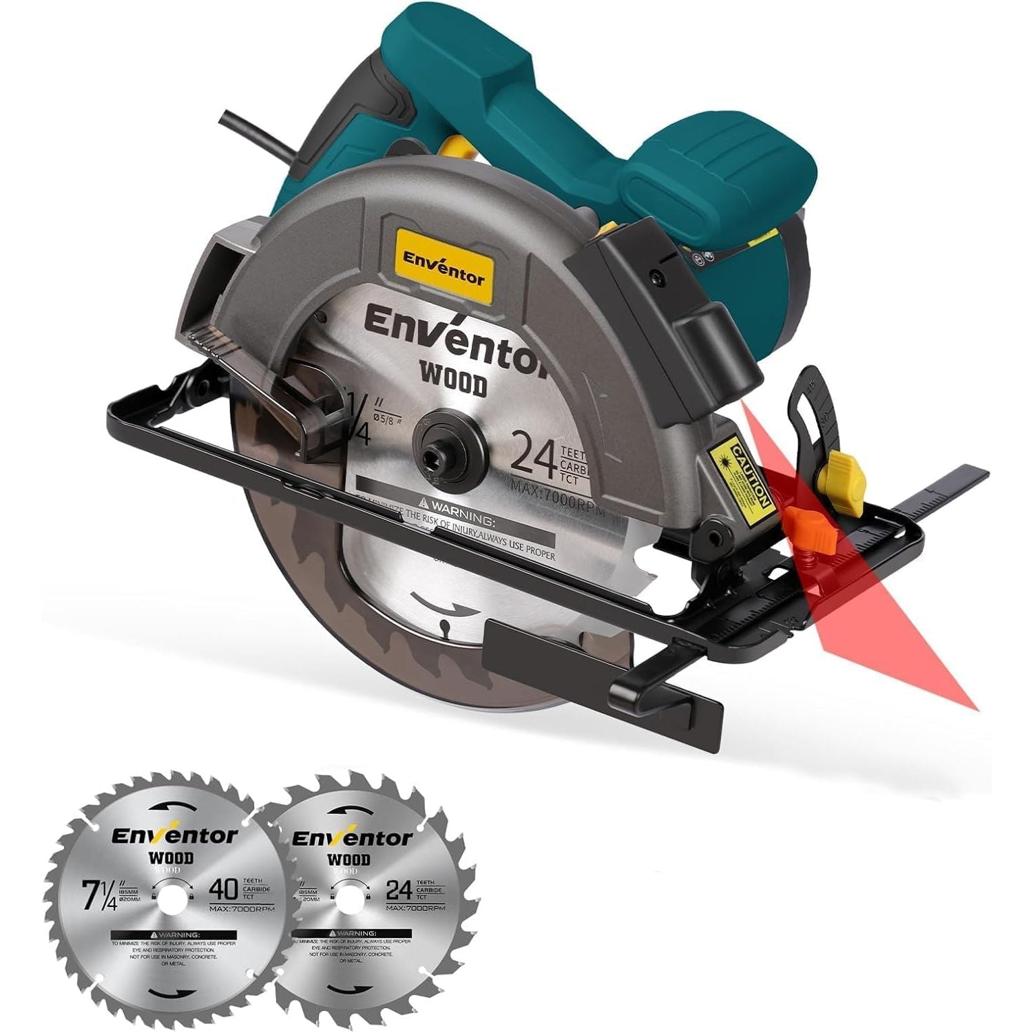 - Adjustable Cutting Depth and Angle: ENVENTOR Electric circular saw allows you to adjust the cutting angle from 0° to 45° freely. the maximum cutting depth can reach 62mm (90°) and 48mm (45°). Angle and depth adjustment can help you flexibly adjust in woodworking.
