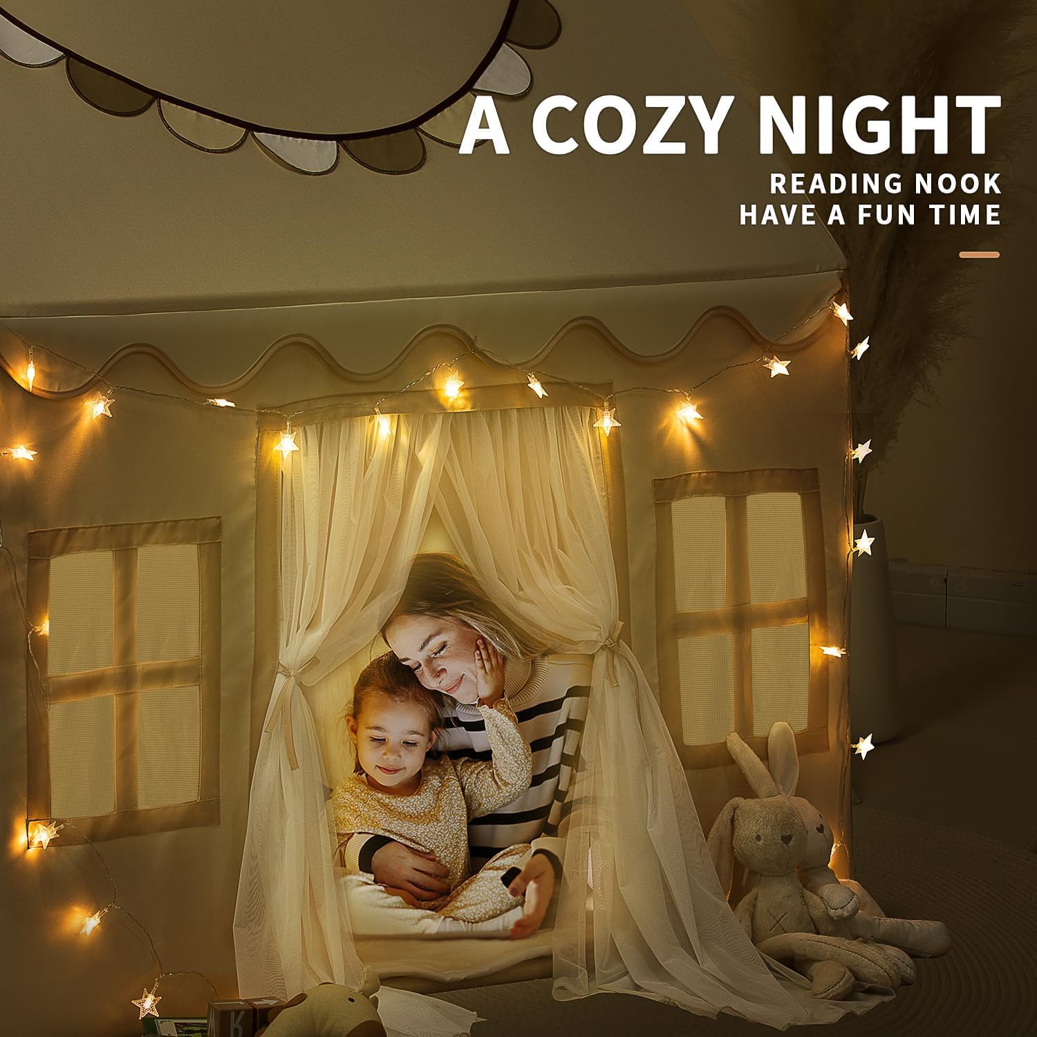 • Star Lights: Designed as a decoration, this play tent for toddlers features a string of star lights. Like a fairy tale castle sparkling at night, the twinkling stars create a lovely atmosphere. Batteries are not included in the product