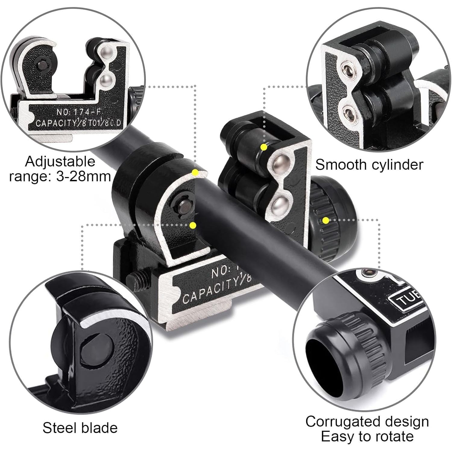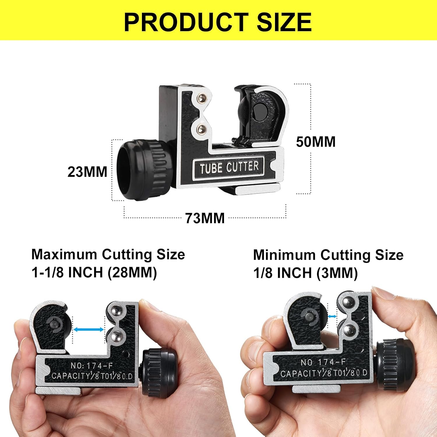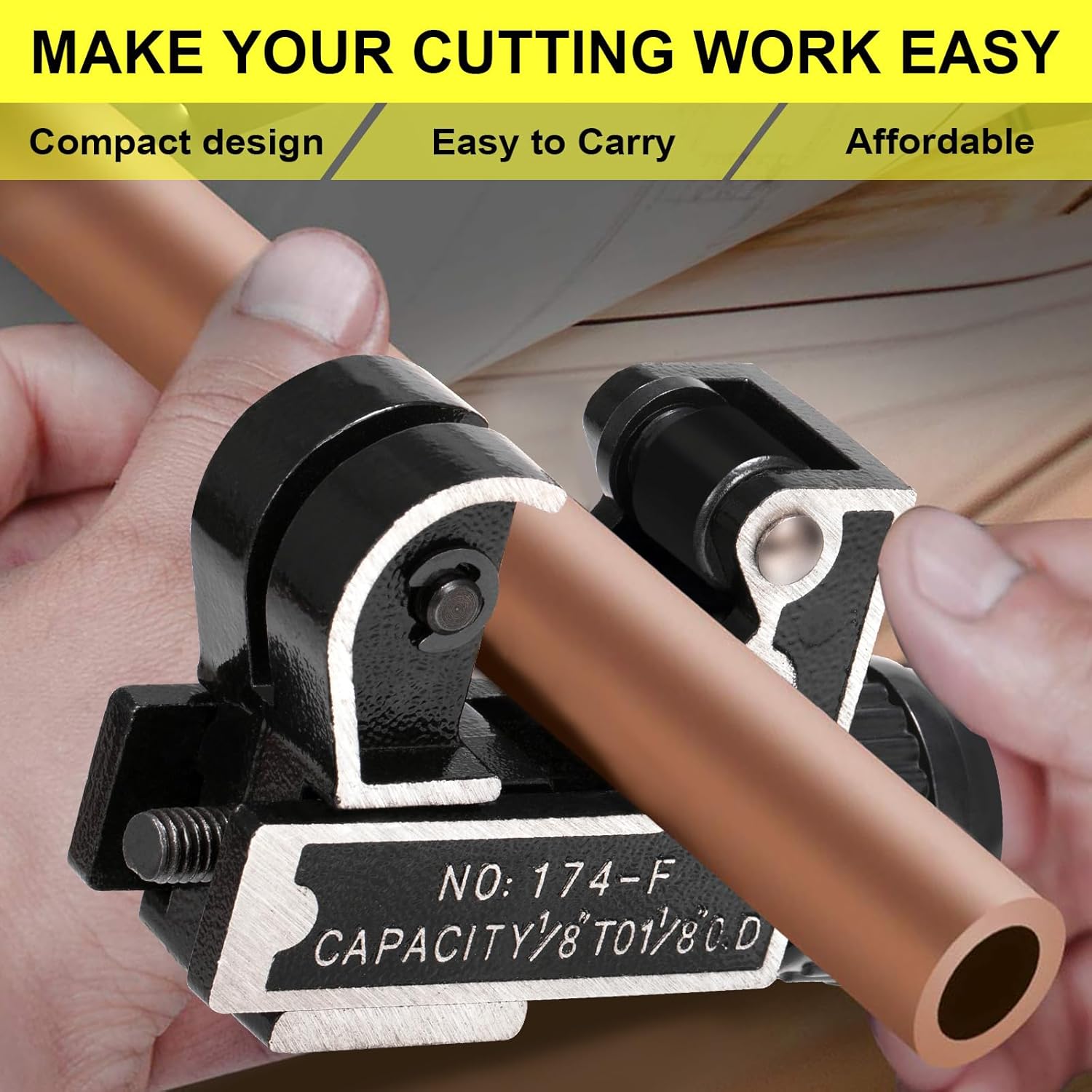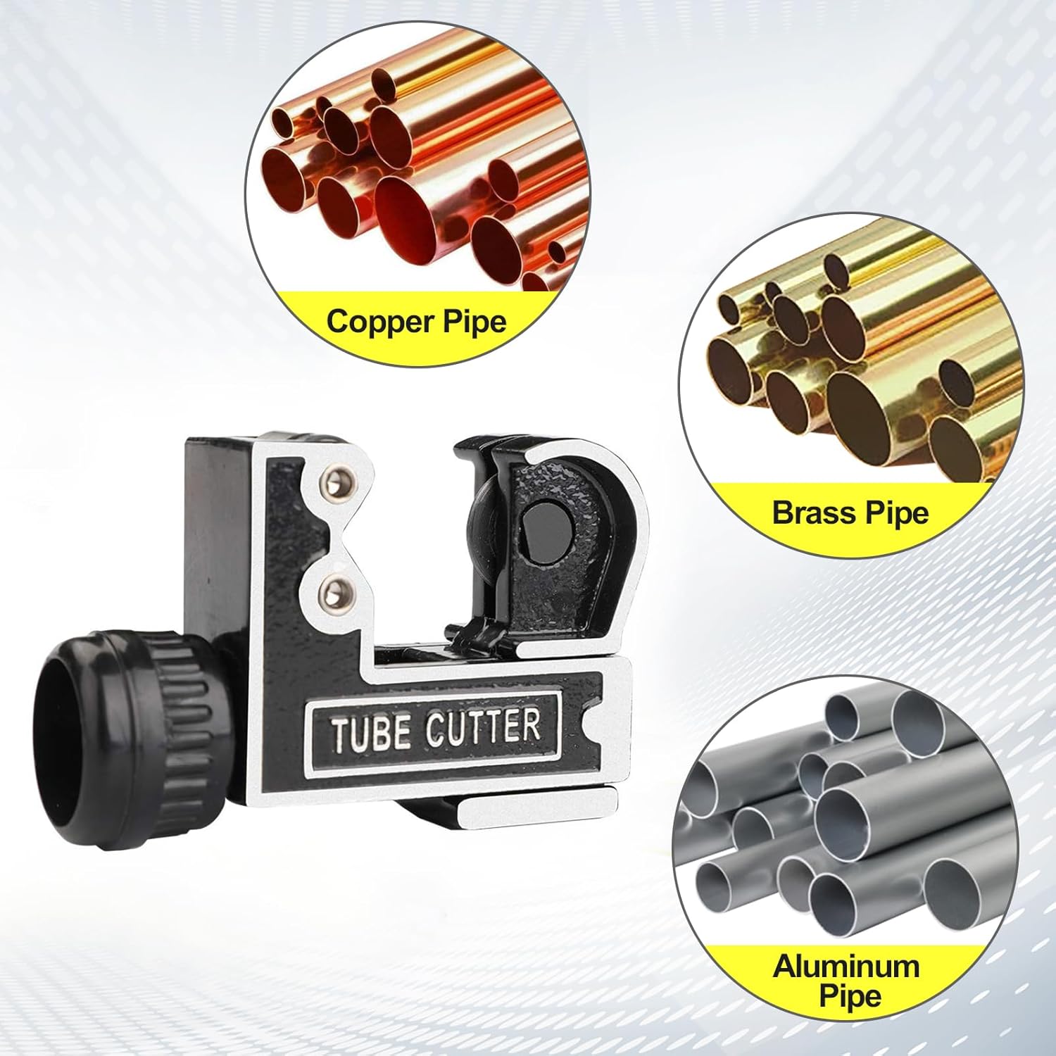 - Metal pipe cutting tool can cut copper, brass, and aluminum pipes with an adjustable cutting capacity range between 3mm to 28mm (1/8 inch to 1-1/8 inch)