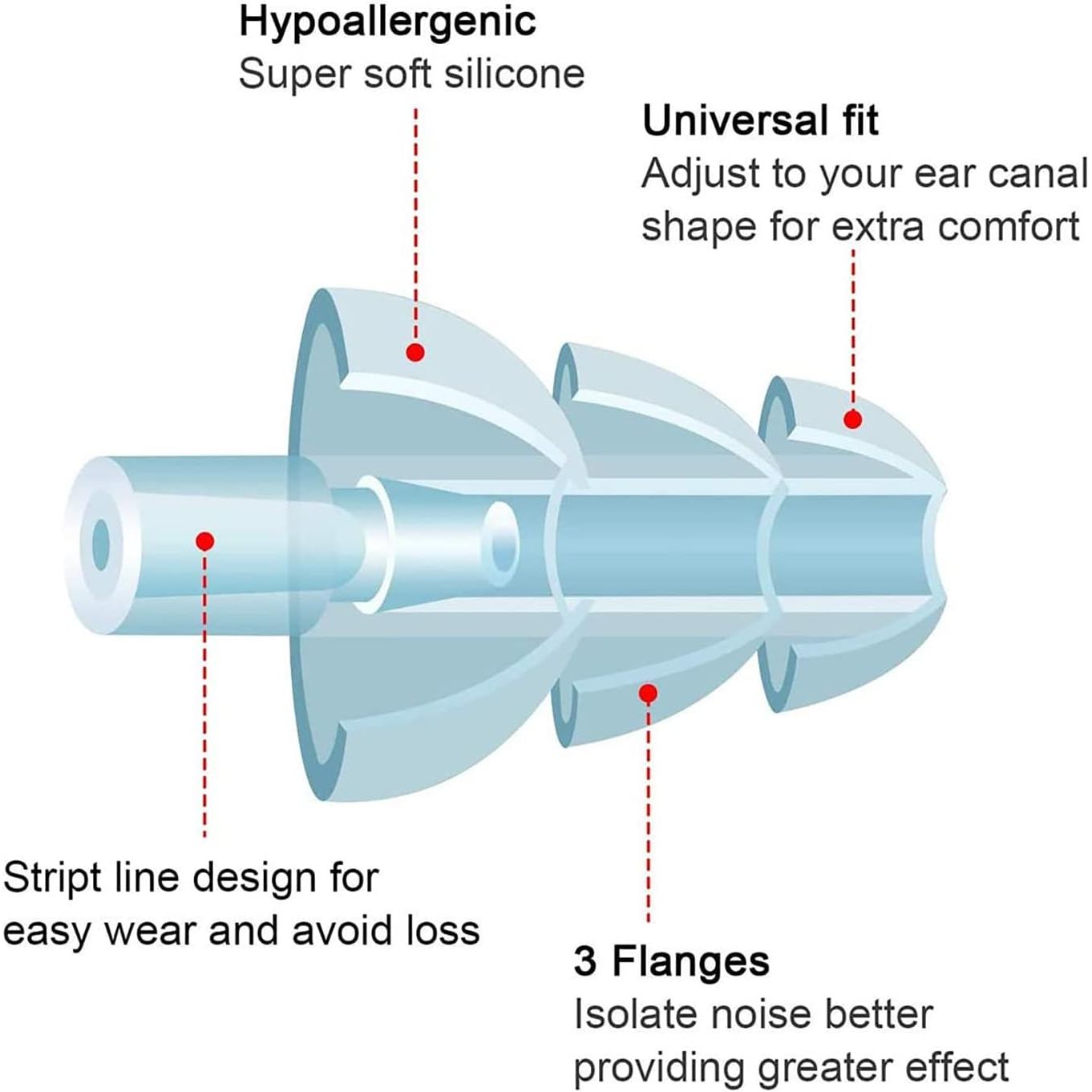 - Comfortable Ear Plugs: These earplugs can fit your ear perfectly due to the soft silicone material and comfortable shape, you will enjoy with them in every moment.