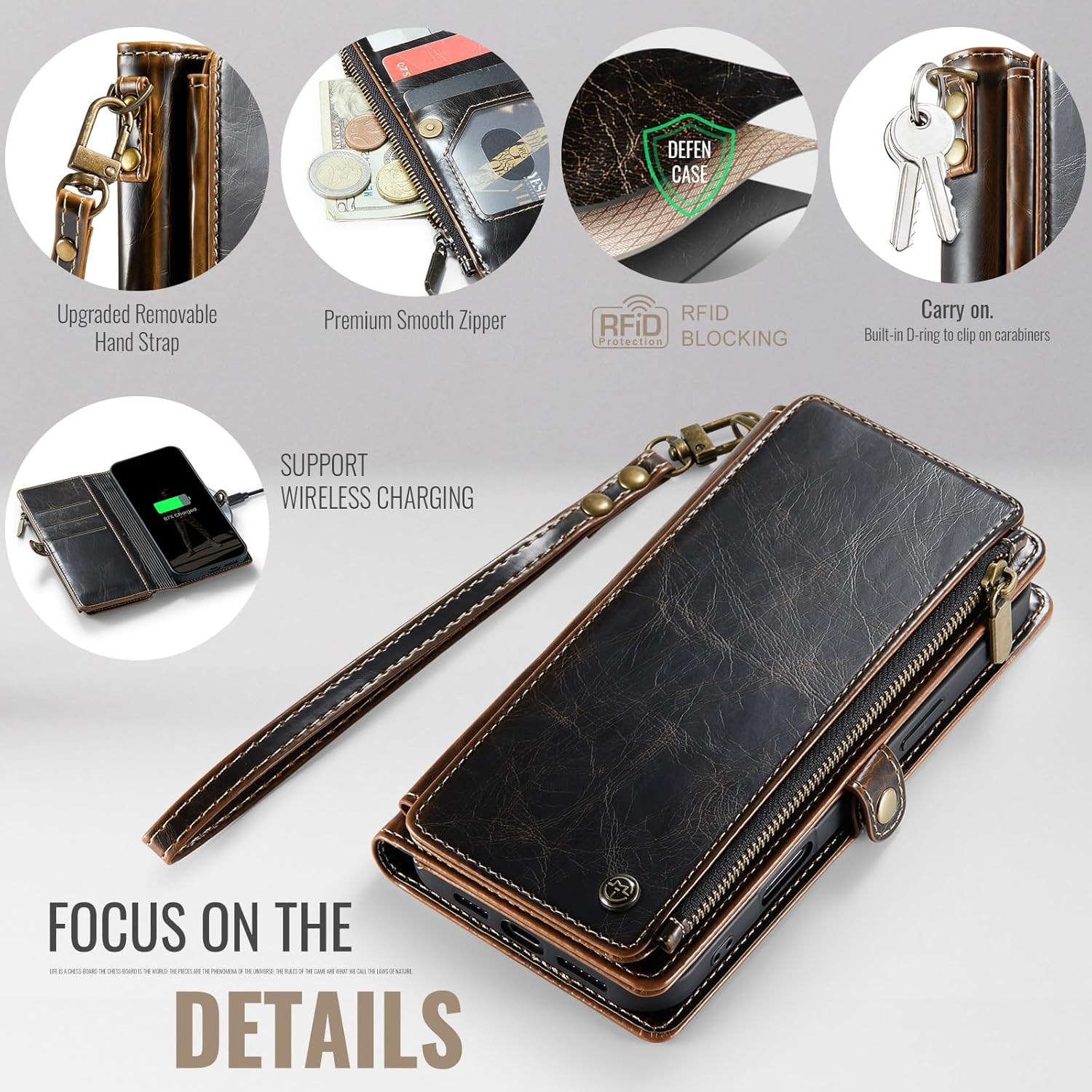- 3.【All-in-One Wallet Design】: Multifunctional clutch pouch + phone case in one. With mini buttons folio flip include card holder & zipper pocket & phone shell part,all-in-one design allows you carry this case go outside without carrying your bulky wallet,this case suitable for women & men. It will be your perfect partner when go shopping,go for a walk,business trip,short journey or go to work.