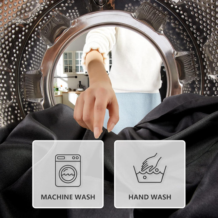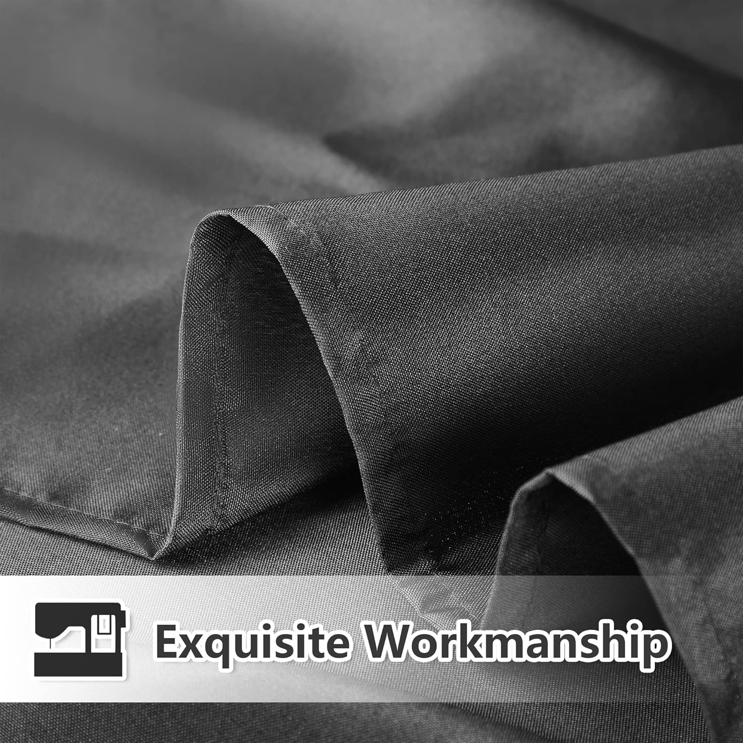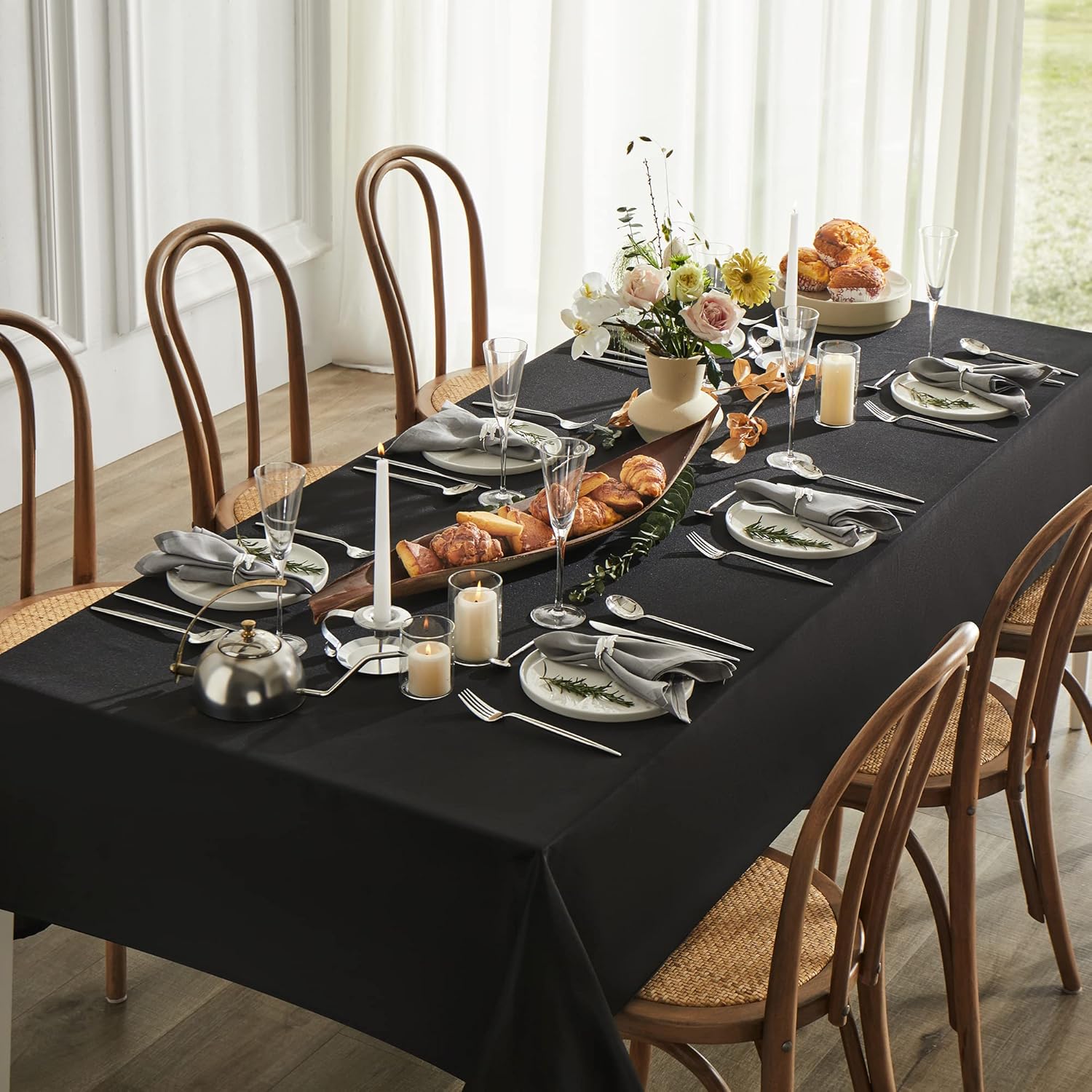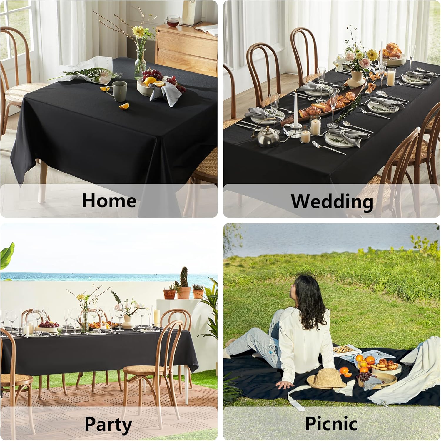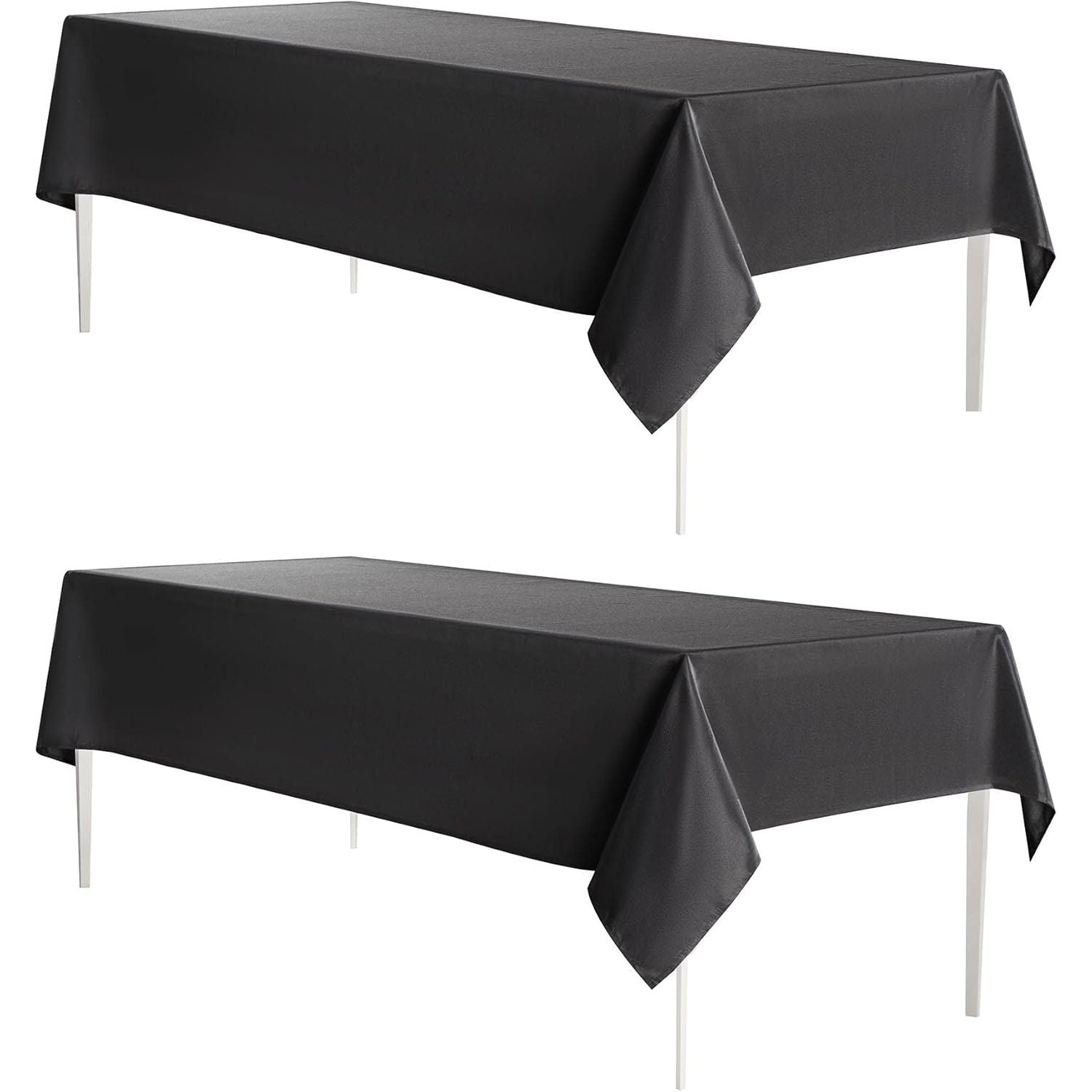 - HIGH QUALITY MATERIAL: This black table cloth is made from 100 % Polyester fabric, which is fade resistant and machine washable. With elegant hemmed edges and seamless construction, it can easily protect your tables from scratches, stains and sun rays, decorate your tables and match your dining occasions.