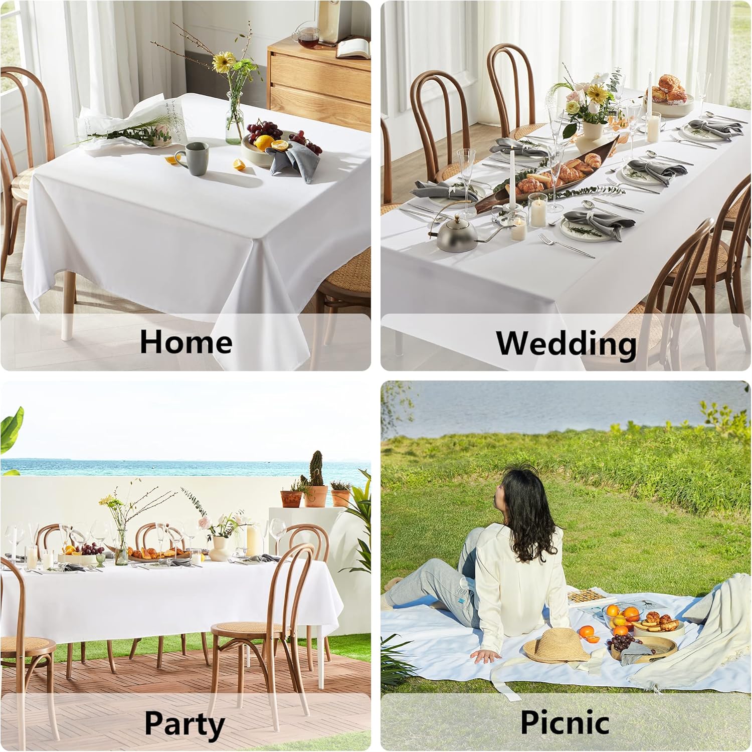- TABLECLOTH FOR MORE APPLICATIONS: The polyester table cloth is suitable for parties, wedding receptions, baby showers, buffet dinners, dining tables, tea tables, parties, birthdays, cafes, banquets, picnics, barbecues, camping, indoor, outdoor and Everyday use. MYSKY HOME tablecloths can always add a more elegant dining setting to your party events.