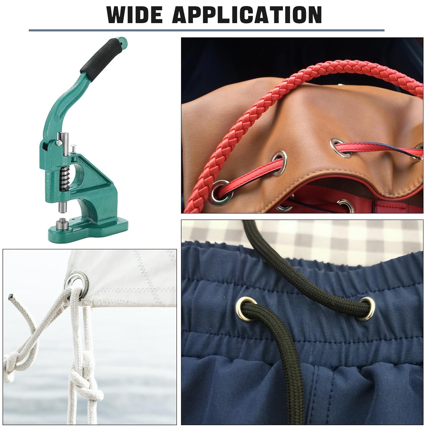 • Wide Application: Specially designed for banners, signs, awnings, posters, curtains, digital printing, scrapbooking, corsets, belts, bags, shoes, etc, widely used as punch machine, eyelet machine, snap fastener machine, rivet machine