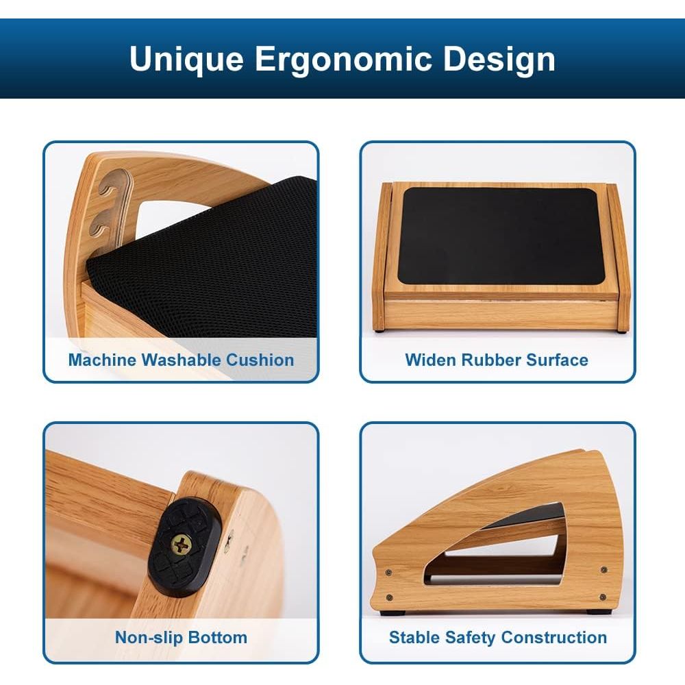 - Safe & Durable: Constructed from high-quality Lauan hardwood plywood sourced from plantation-grown timbers, this foot rest for under desk at work is sturdier and more durable than those made from ordinary plastic. Capable of supporting up to 400 lbs, each footrest comes with an anti-slip bottom to prevent slipping or sliding while rolling and tilting.