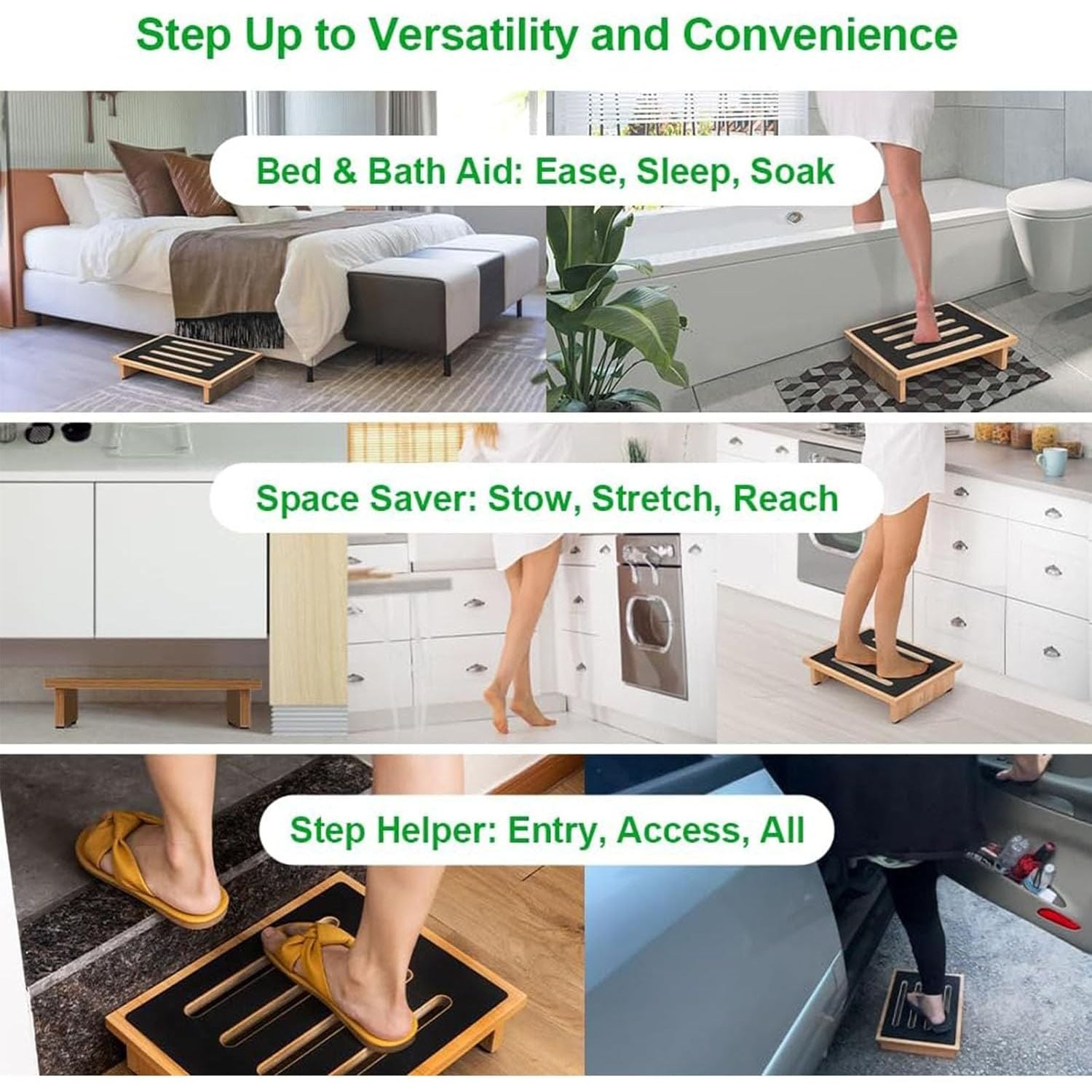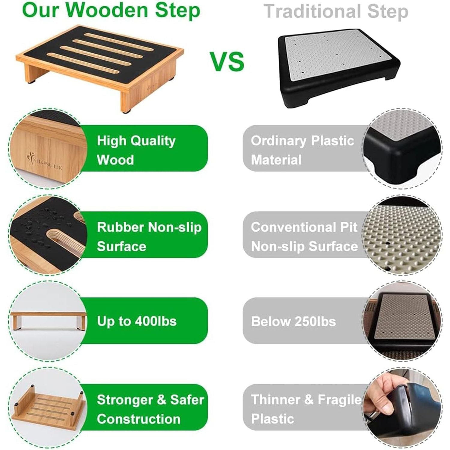• STURDY WOODEN STEP STOOL: A lightweight, portable design makes our stepping stool ideal for getting a leg up in the kitchen, bathroom, laundry room, or even by the bed to help improve reach and accessibility which is vital for children and elderly safety.