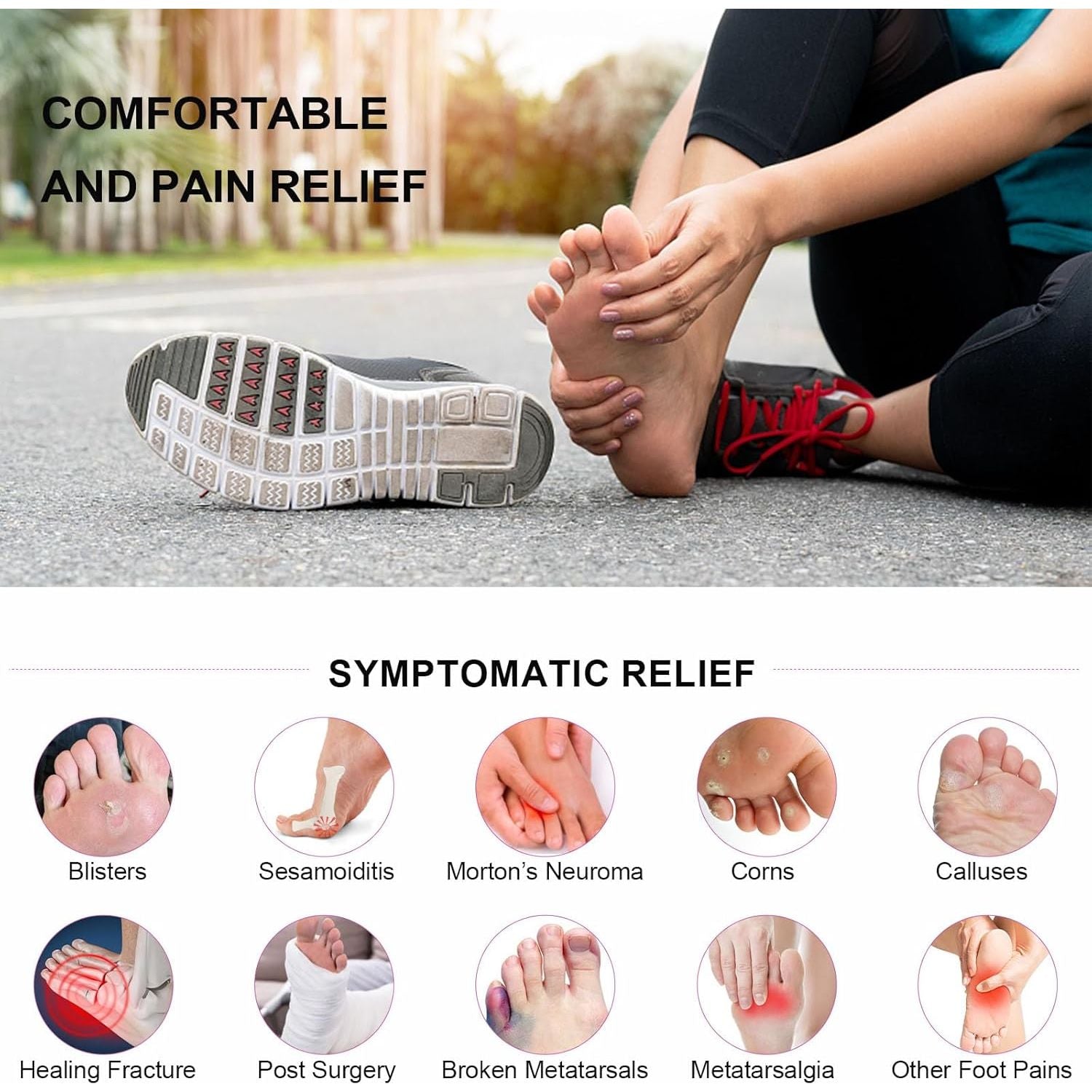 - Strong adhesive, the back of the forefoot cushion pads was made of hight quality glue, strong adhesive, ball of foot pad will not fall off after whole days using, and metatarsal foot pads are easy peel off, leave no trace after remove.