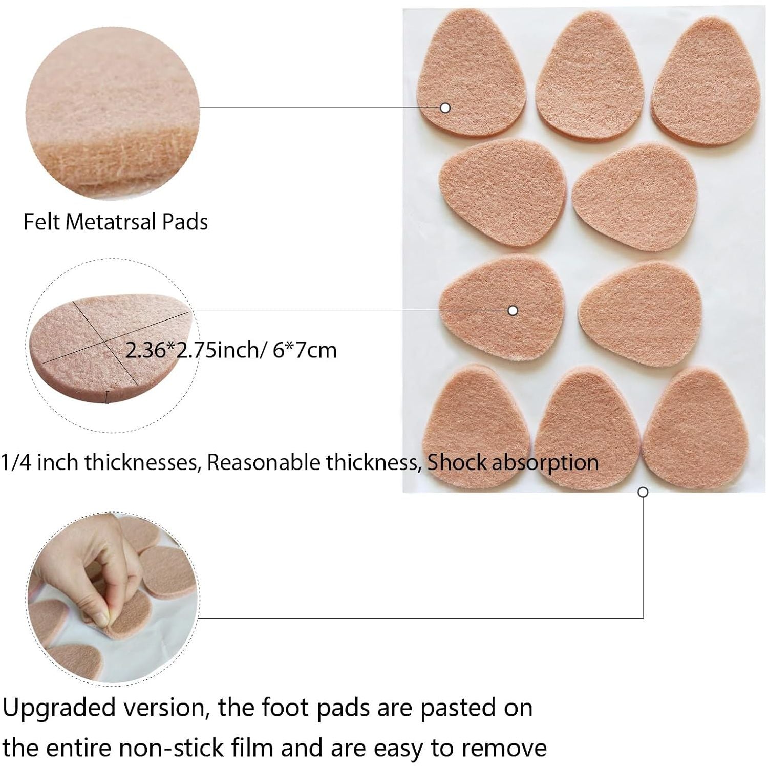 - Made of felt, ventilate, sweat-absorbent, skin-friendly, These metatarsal pads provide extra cushion and support for arch or ball of foot, Relief foot pains caused by Metatarsalgia, Hammer toes, Morton neuromas, fat pad atrophy, burning sensation and etc.