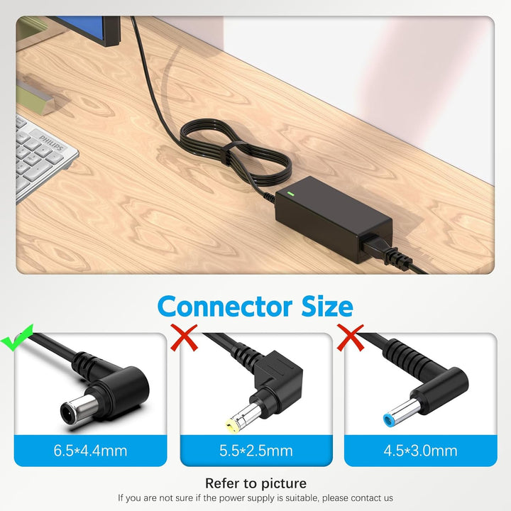 - Input: 100-240V 50-60Hz, Output: 14V, 3A, 42W Max (2.37A 33W, 2.14A 30W, 1.78A 25W Compatible ); Connector Size: 6.5*4.4mm