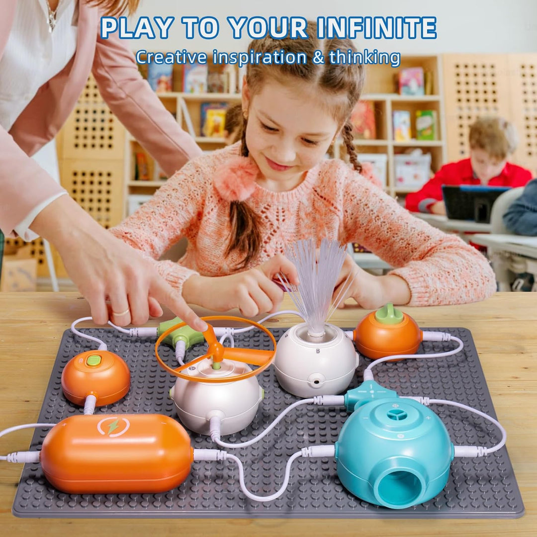 - No Tools Needed – Safe & Fun for Ages 5-7 – Unlike traditional circuit kits, this electronics exploration kit requires no soldering or tools—just snap the parts onto the plastic board! Designed for young scientists ages 5-7, it’s a safe STEM toy that sparks curiosity.