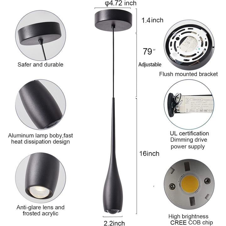 - High Quality Island Lights : kitchen island lighting use CREE chip RA=90, 12W 3000K warm light,No flicker, eye protection ,energy-saving and maintenance-free, the modern pendant light also use ETL certified dimming Drive, High quality electrical components extend the lifespan of pendant lighting fixtures.