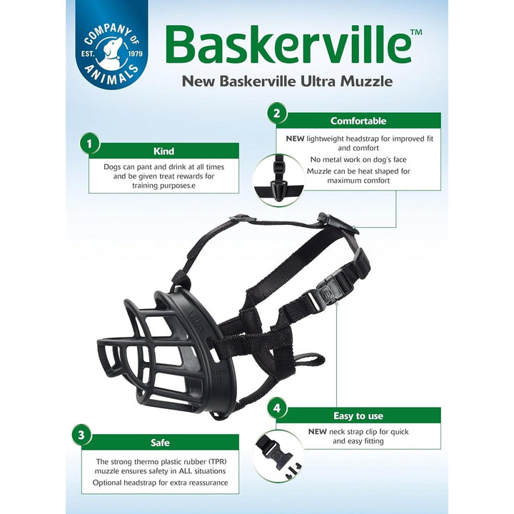 - DOGS CAN PANT AND DRINK: The Baskerville Ultra Muzzle PATENTED HUMANE DESIGN allows dogs to pant (when hot or stressed) and drink. SUITABLE FOR DAILY WALKS and longer periods of wear.