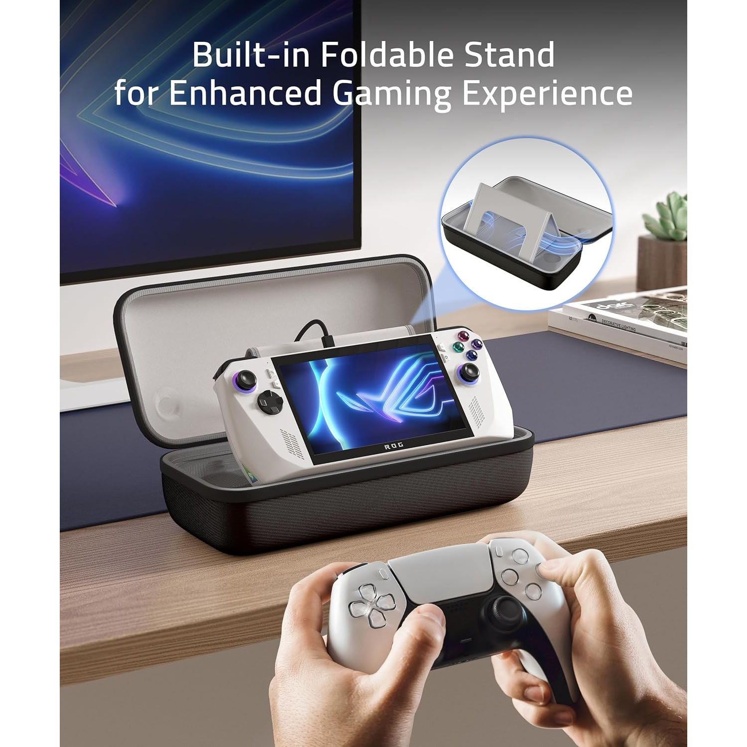 • Multi-functional Stand: The built-in foldable partition integrates protection and stand functions in one. It provides a stable base for your ROG Ally/ROG Ally X console when connecting to other devices or charging, its hollow design enhances heat dissipation for optimal performance. In addition, the partition also serves as screen protection during storage