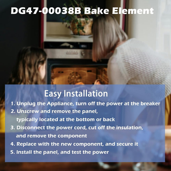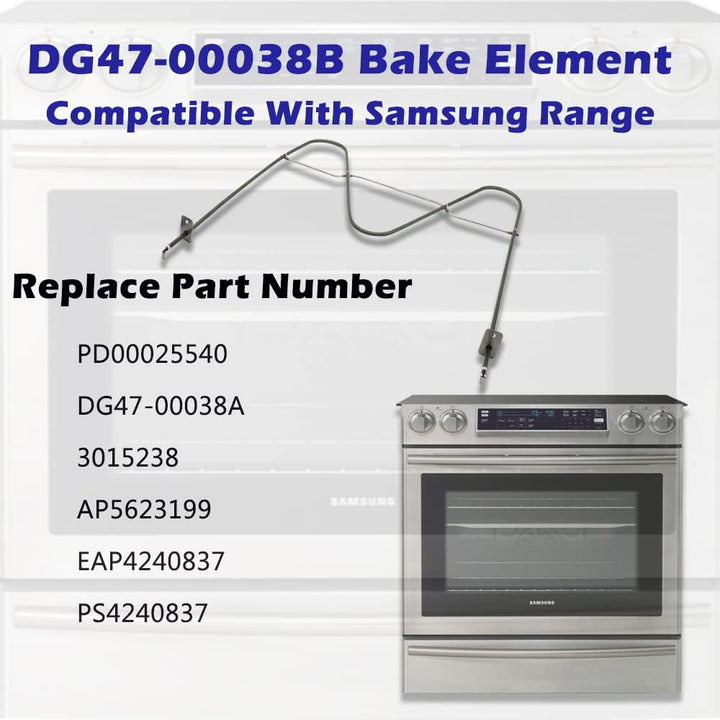 - 【Money Back Guarantee】We provides a 2-year warranty service for the DG47-00038B Bake Element, if our product has quality problem or for any reason you're not completely satisfied with the product, you can ask for a replacement or refund. Note: Accessories are compatible spares (non-original), the above brand names and any related model names are only used to demonstrate compatibility.
