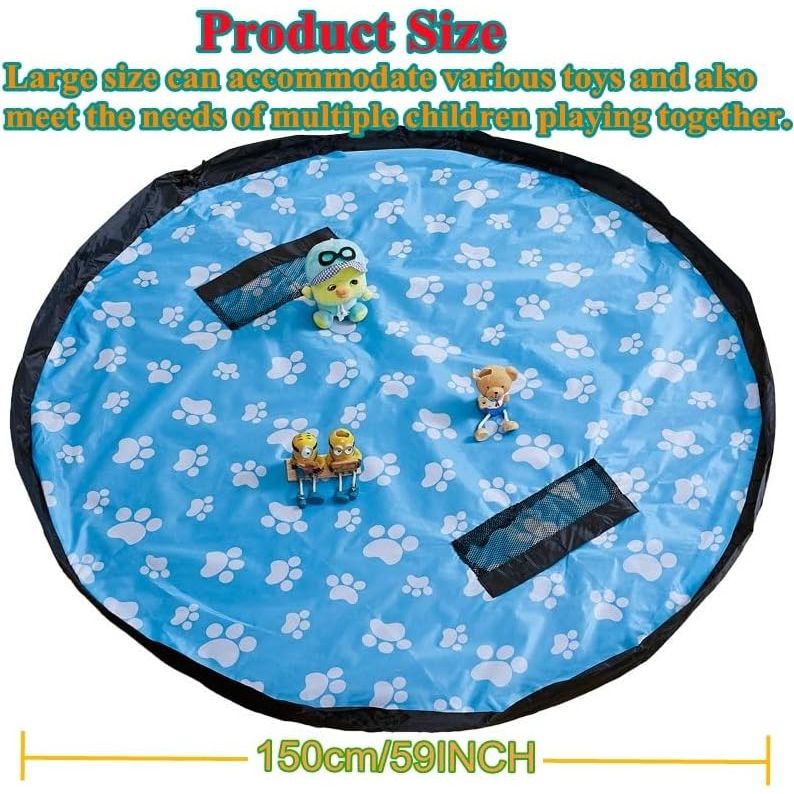 - Double Layer Huge Mat - The PlayBag starts as a huge floor mat that extends out to 60"" offering plenty of space for your kids to spread out their toys and play. When play is finished, the storage bag offers tons of room for small and medium sized toys "
