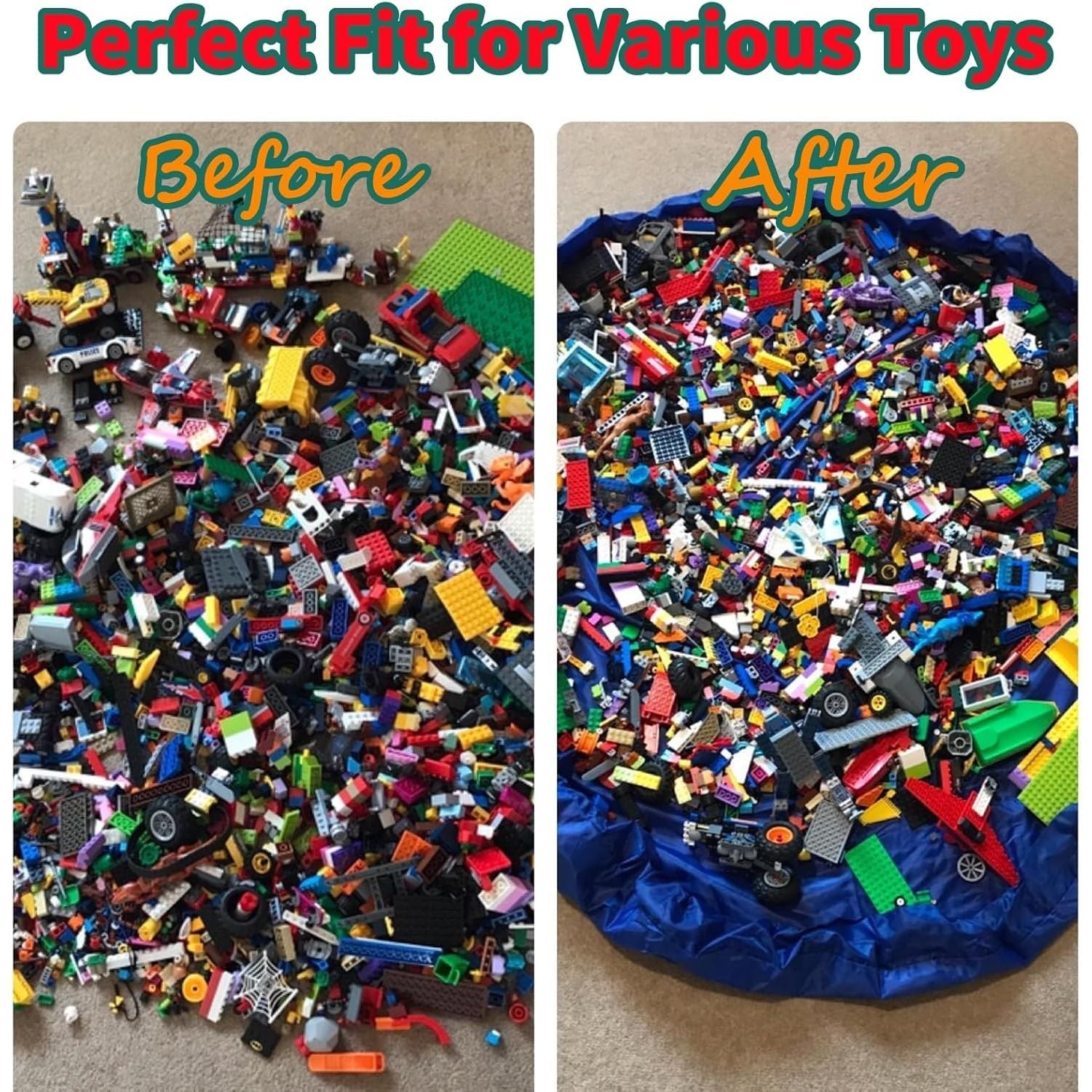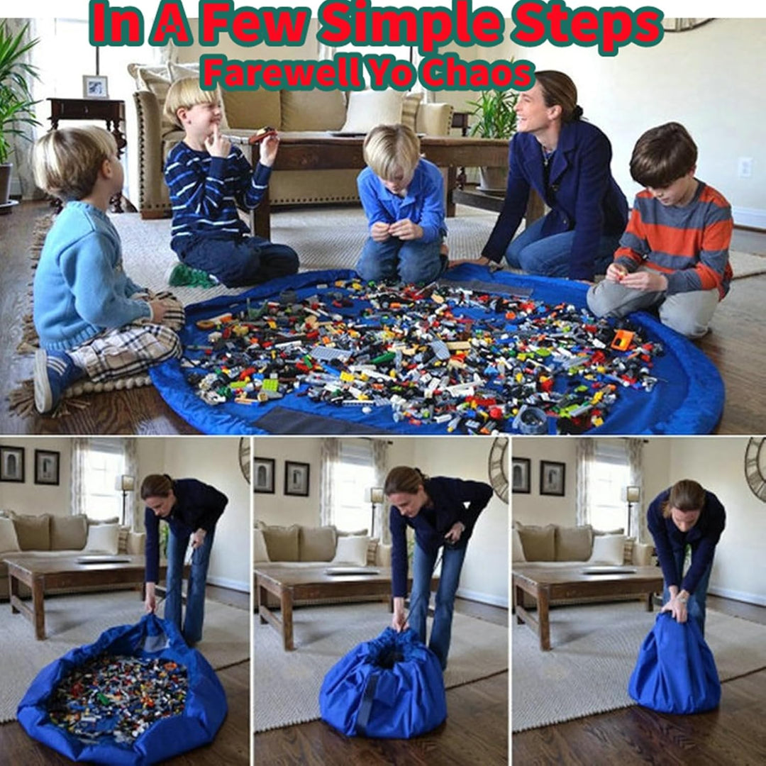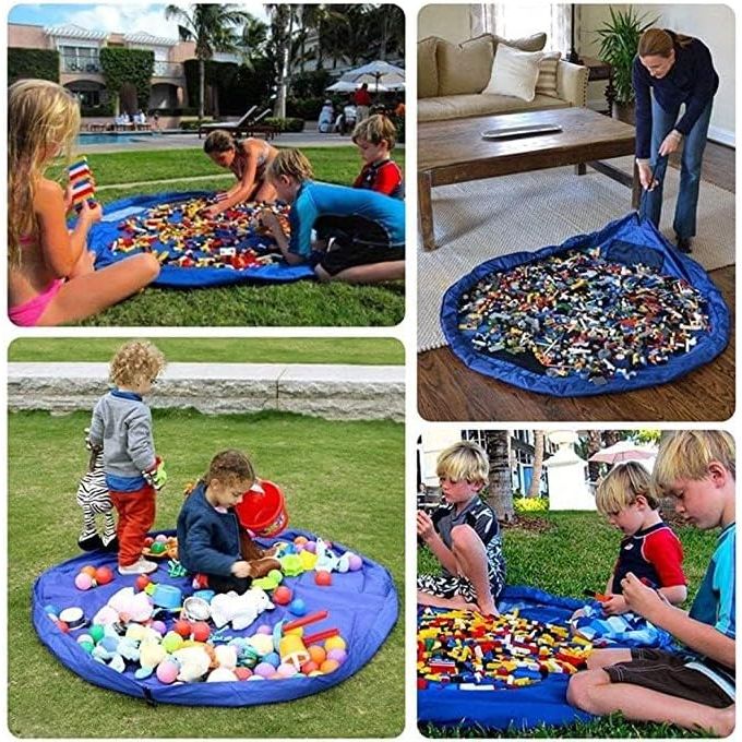 - CONVENIENT-Perfect for keeping toys organized at home, also great when used for bringing toys and games to a friend's house so toys don't get lost. Functions beautifully at outdoor picnics, camping, grandparents' house, the beach and more. Plus, the mat it's easy to clean even after a trip to the beach.