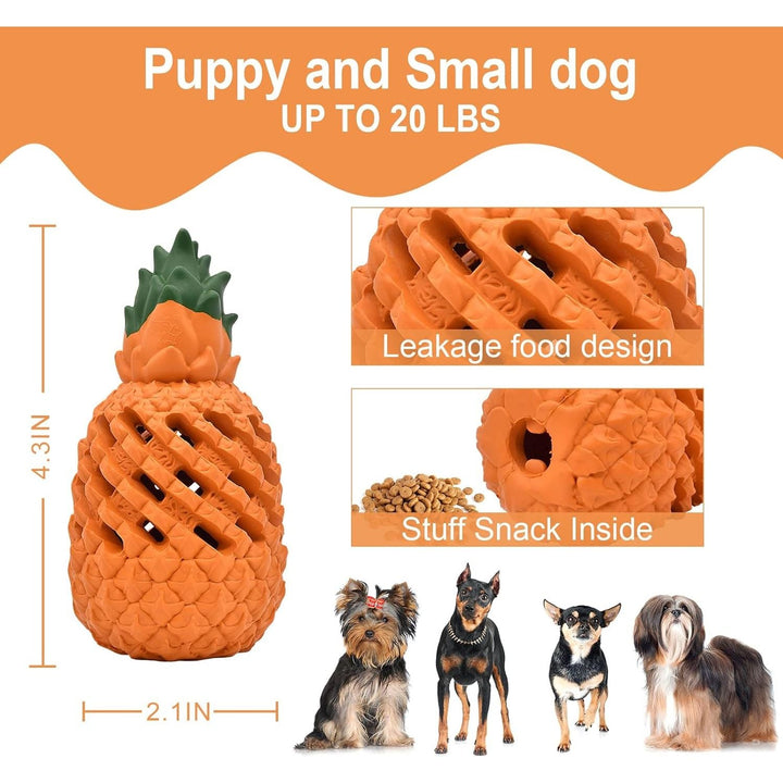 - Great For Stuffing: PETOPIA classic pineapple rubber toy offers hours of entertainment and could be coated with different flavored sauces. It can attract dogs once it’s stuffed with snacks, peanut butter, or kibble.