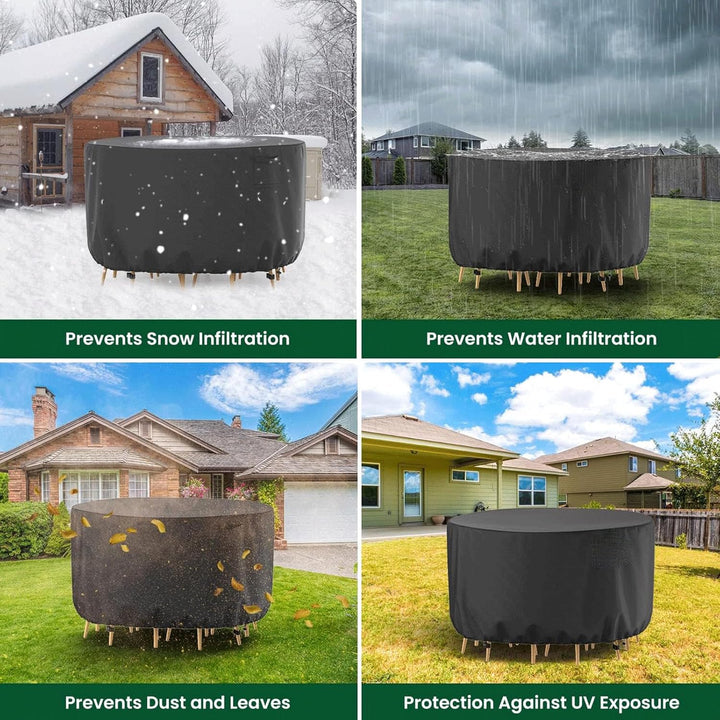 - 【Perfect Fit Guarantee】Specially designed for 84" Diameter x 27.5"H round tables (Fits most 4-6 chair sets). Always measure your patio furniture before purchase to ensure full coverage.