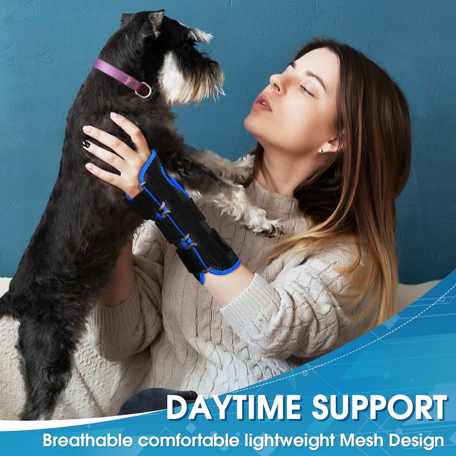 - COMFORTABLE & BREATHABLE: The mesh design on the surface of the thumb wrist splint can quickly dissipate sweat and keep your wrists fresh and dry 24 hours; the lining is made of flannel material, which is soft and skin-friendly, and has no odor, which can keep you comfortable throughout the day and night wear for optimal treatment results