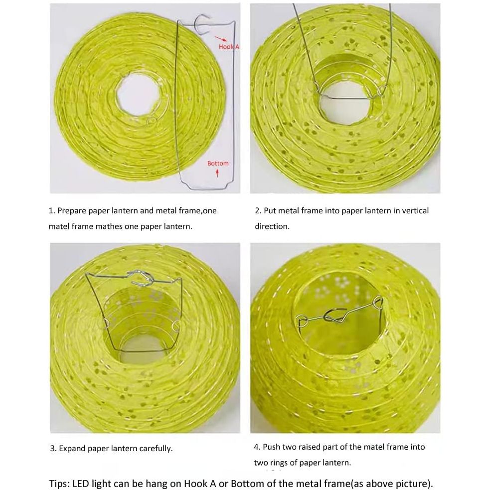 • 【EASY TO ASSEMBLE AND REUSABLE】Made of high quality tissue paper and metal supports, round paper lanterns could easily be stored and used multiple times. you can easily open or fold the lantern. Assembly Manual is attached in the package for your use.