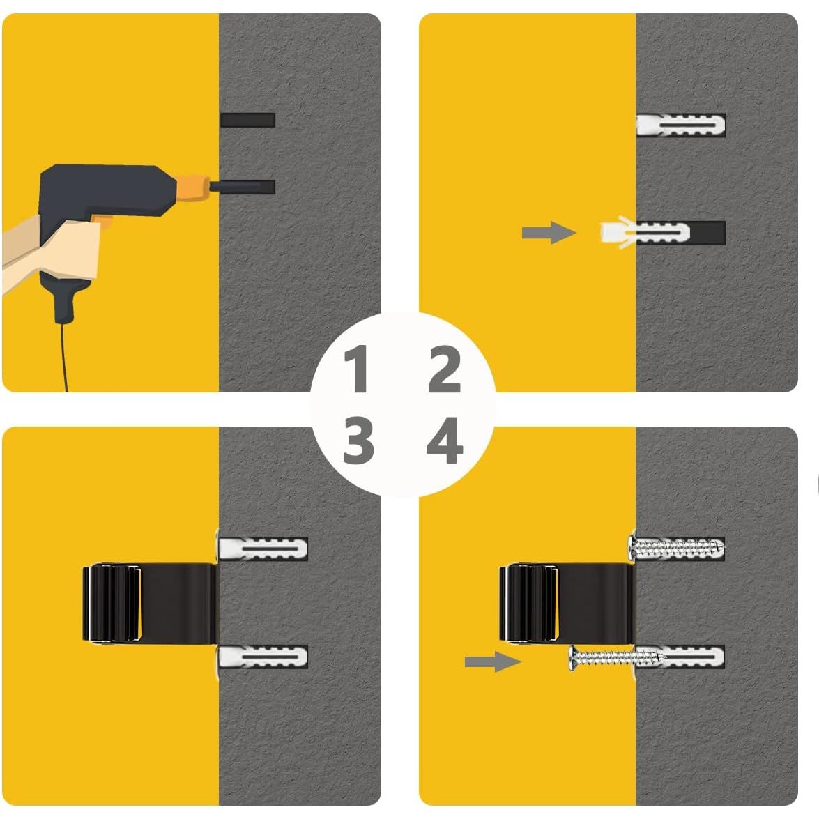 - STURDY Stainless Steel: Corrosion-resistant, moisture-resistant, and waterproof. Designed for the best combination of stability and clamping force. And this broom hanger wall mount can hold up to 2.5 kg. What's more, our set includes 12 screws & dowels each - so your broom holder wall mount is ready to use right away!