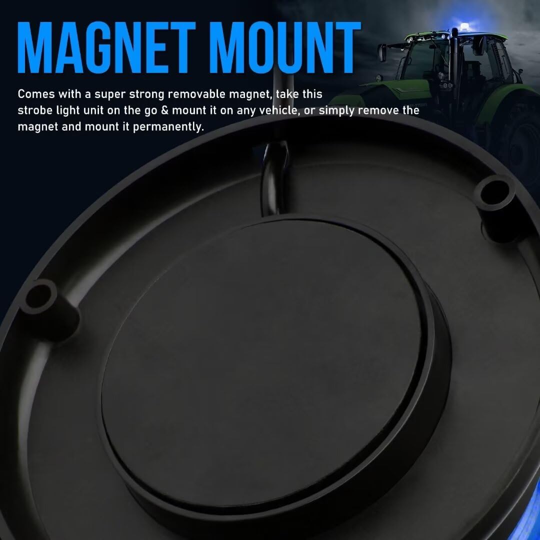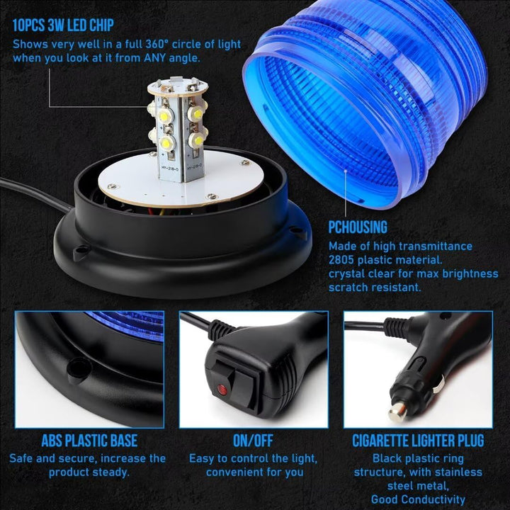 OPP ULITE Blue Led Strobe Light Magnetic Base 30W 7 Flashing Mode DC 12V - 24V Emergency Beacon Roof Top Strobe Flashing Lights for Vehicle Forklift Truck Tractor Golf Carts UTV Car Bus - Just Closeouts Canada Inc.