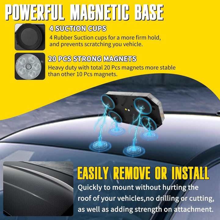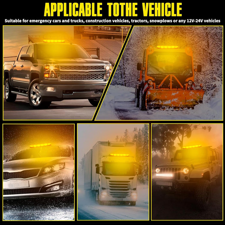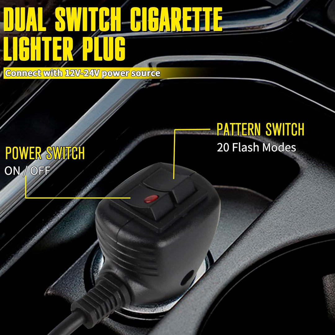 • EASY TO INSTALL: The amber beacon lights for trucks comes with 20 Total Strong Magnets Base, NO need to drilling or cutting and increased hold. Cigarette adapter with ON/OFF switch will be easily to choose the mode that you need.