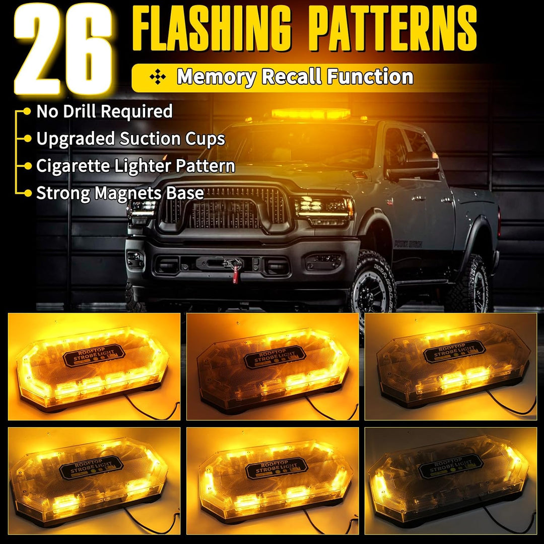 OPL5 Amber LED Rooftop Strobe Beacon Lights 16 Inch, High Bright 56 LEDs Beacon Emergency Warning 26 Flashing Modes Light for 12 - 24V Trucks, Snow Plow, Construction Vehicles, Amber - Just Closeouts Canada Inc.