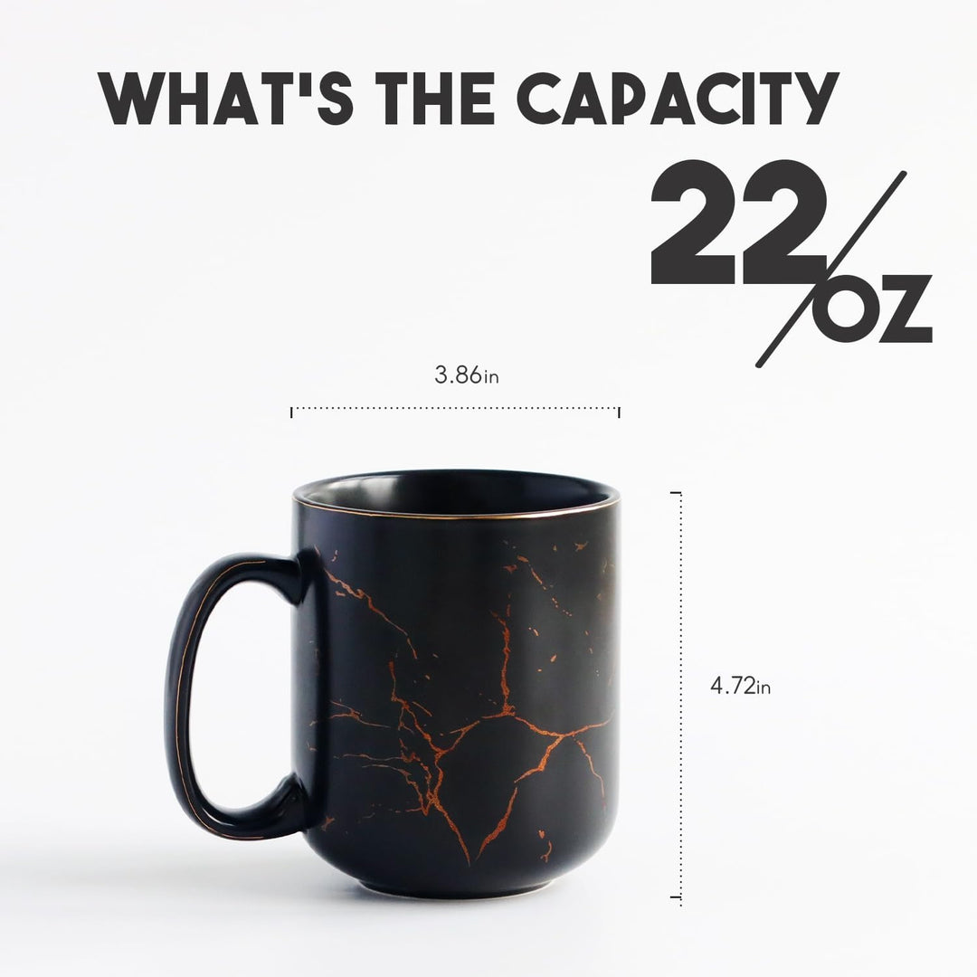Harebe 22 OZ Extra Large Golden Black Marble Ceramic Coffee Mug with Handle, Oversized Hot Tall Latte Mugs, Dishwasher Safe