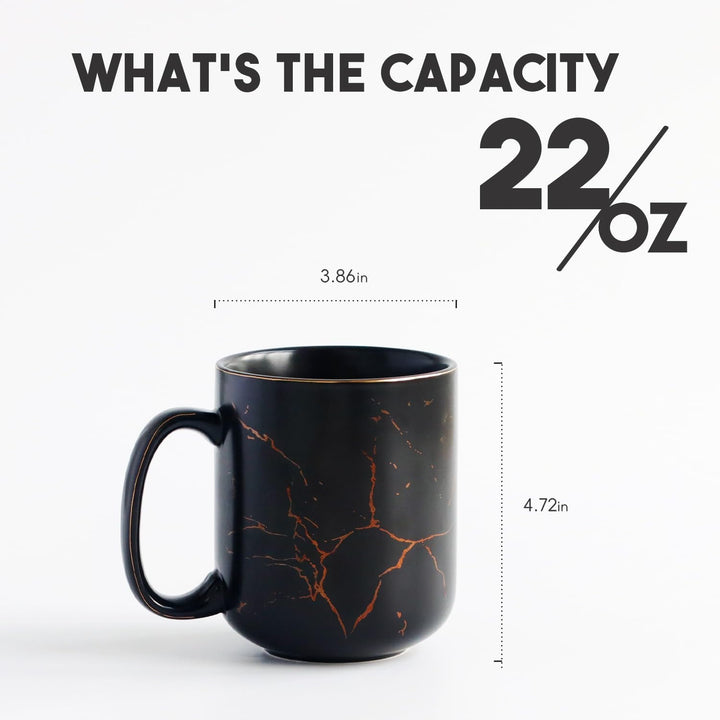 Harebe 22 OZ Extra Large Golden Black Marble Ceramic Coffee Mug with Handle, Oversized Hot Tall Latte Mugs, Dishwasher Safe - Just Closeouts Canada Inc.