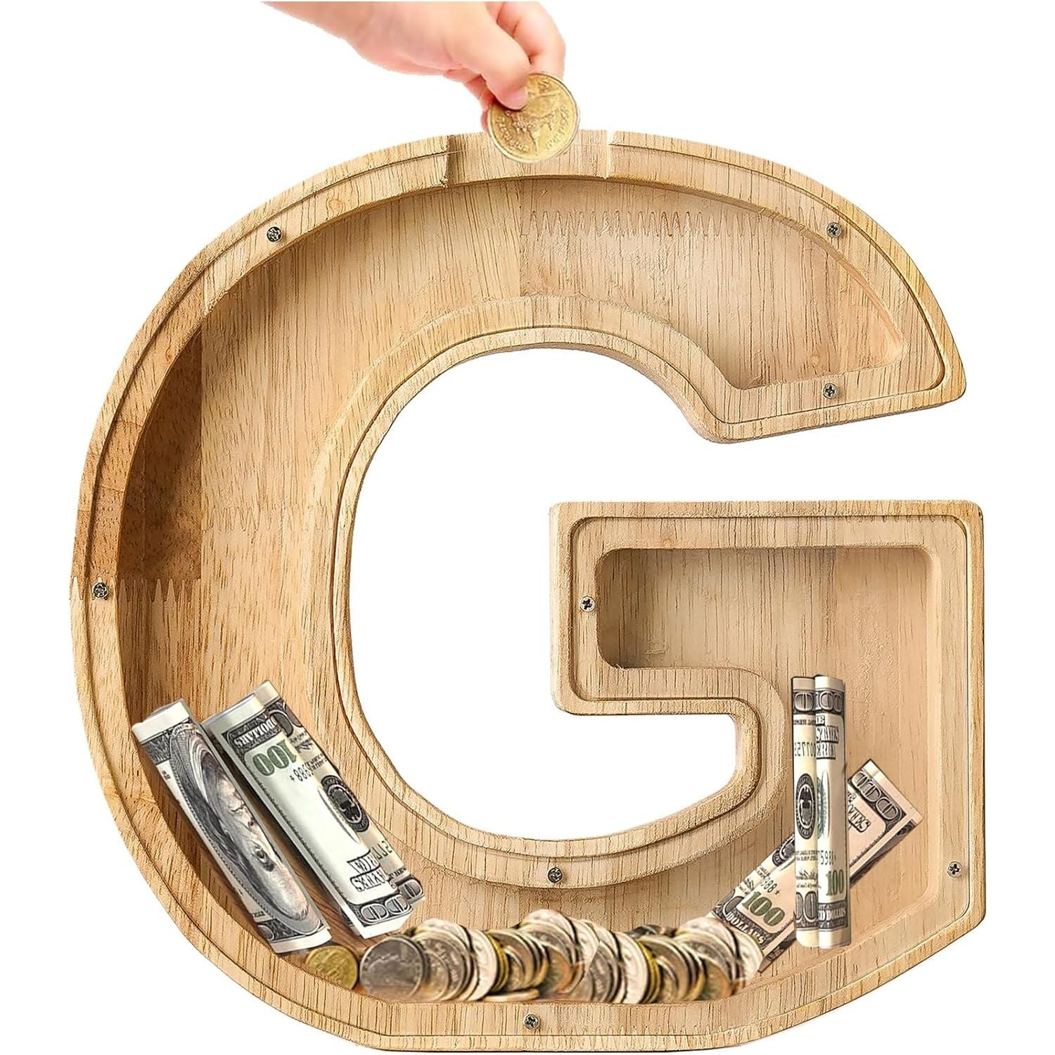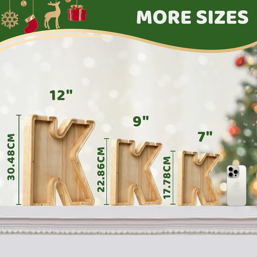 - 🌟 Quality Wooden Materials: We use thick, natural wood and odourless acrylic to ensure that each letter piggy bank is sturdy and durable, giving you peace of mind. The smooth surface makes it safe for both adults and kids.