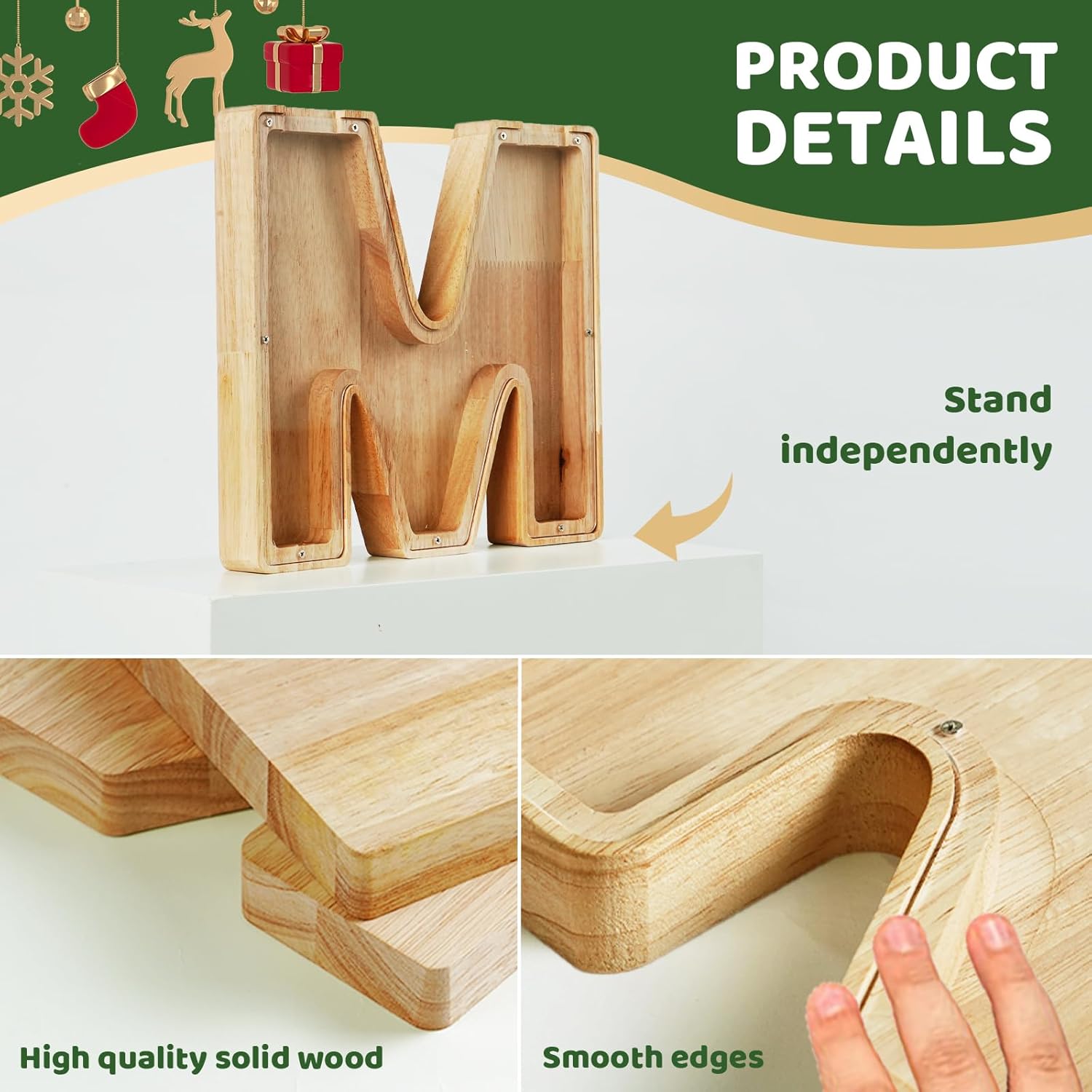 • 🌟 Quality Wooden Materials: We use thick, natural wood and odourless acrylic to ensure that each letter piggy bank is sturdy and durable, giving you peace of mind. The smooth surface makes it safe for both adults and kids.