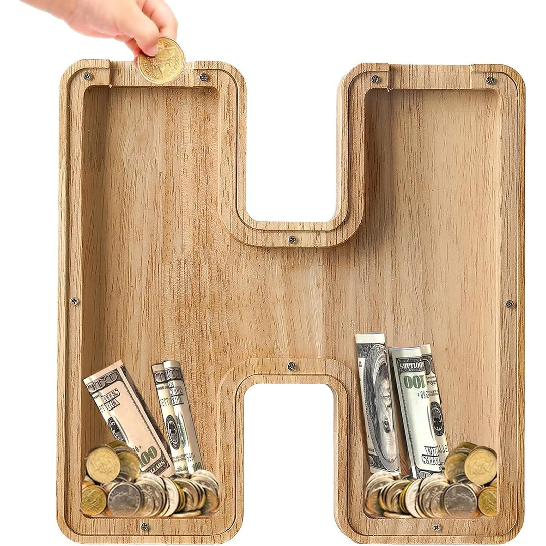 Bemaystar Letter - Piggy - Bank for Kids, Wooden Money - Box, Initial Letters Piggy - Banks for Girls Boys, 9 Inch Money Bank Coin Bank, Christmas Birthday Gifts for Kids(H) - Just Closeouts Canada Inc.