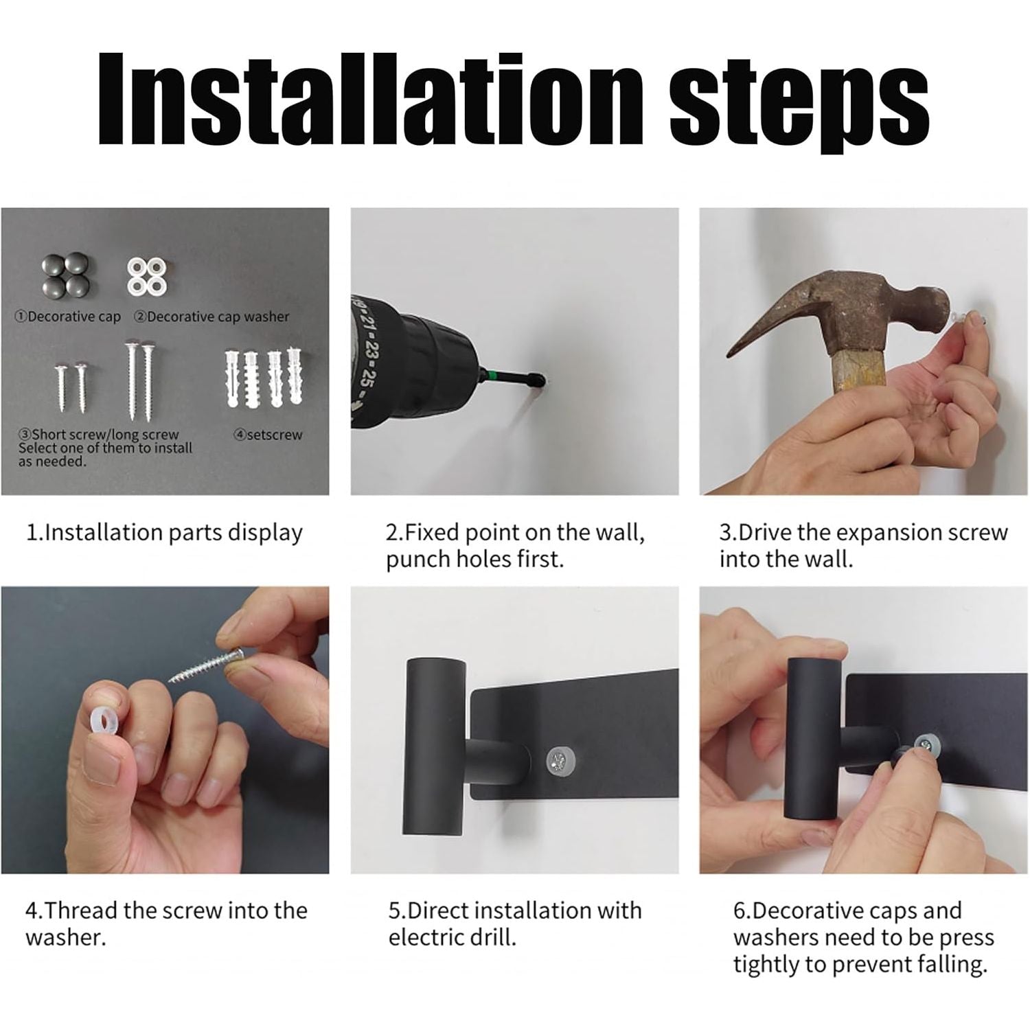 • Easy to Install: Wall mounted hangers are easy to install on walls or wooden doors; The installation hardware includes screws, plastic expansion anchors, and washers